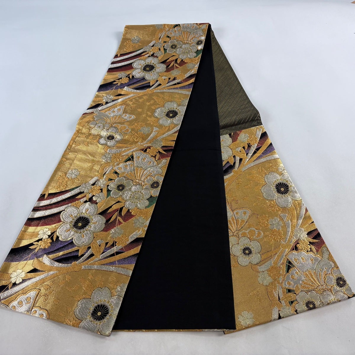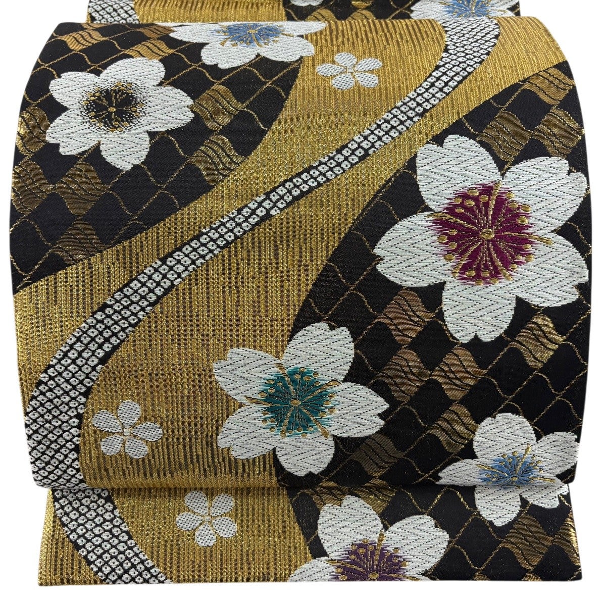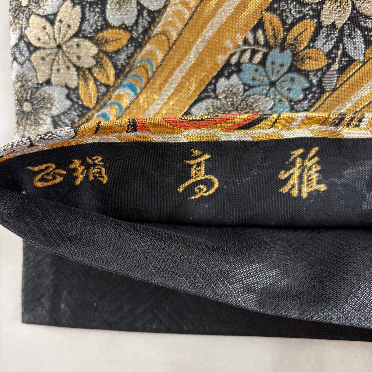袋帯 秀品 鈴乃屋 桜 熨斗 金銀糸 箔 黒 六通 正絹