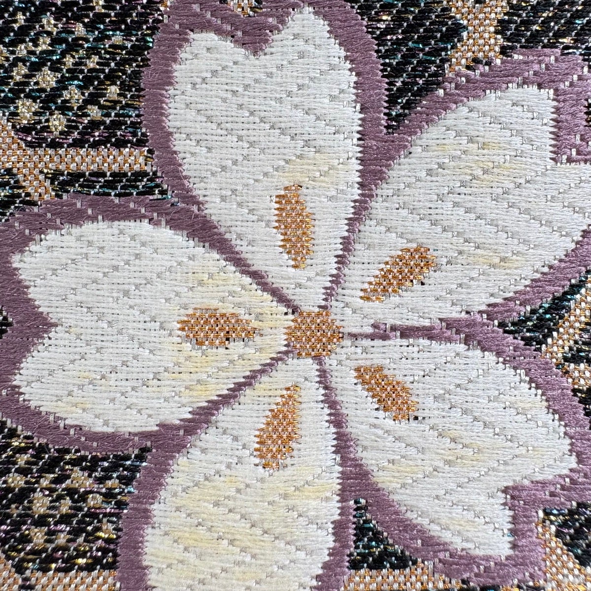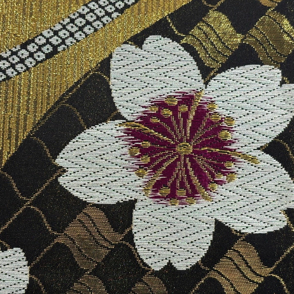 【美品】 袋帯 秀品 華文 桜 金糸 箔 黒 六通 正絹