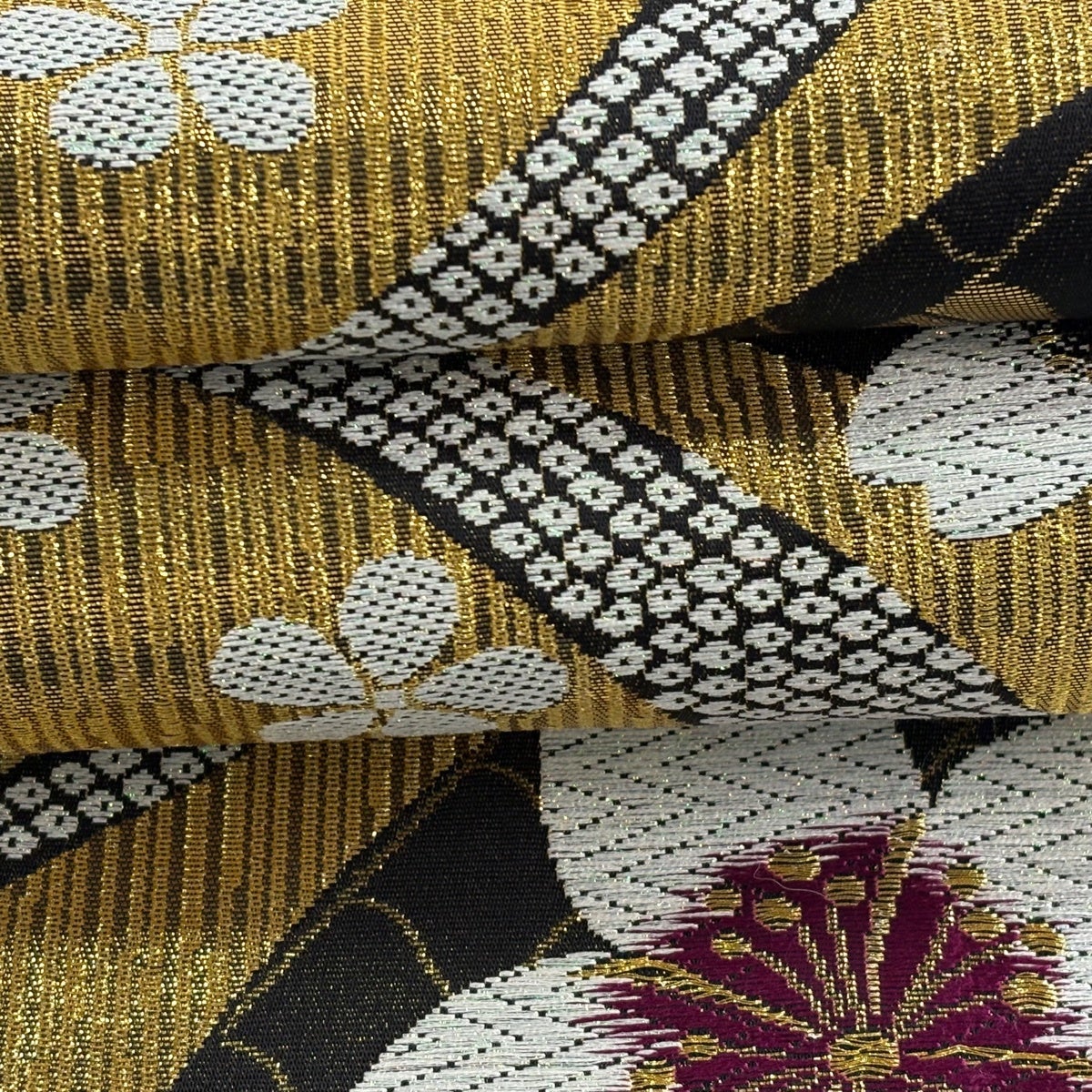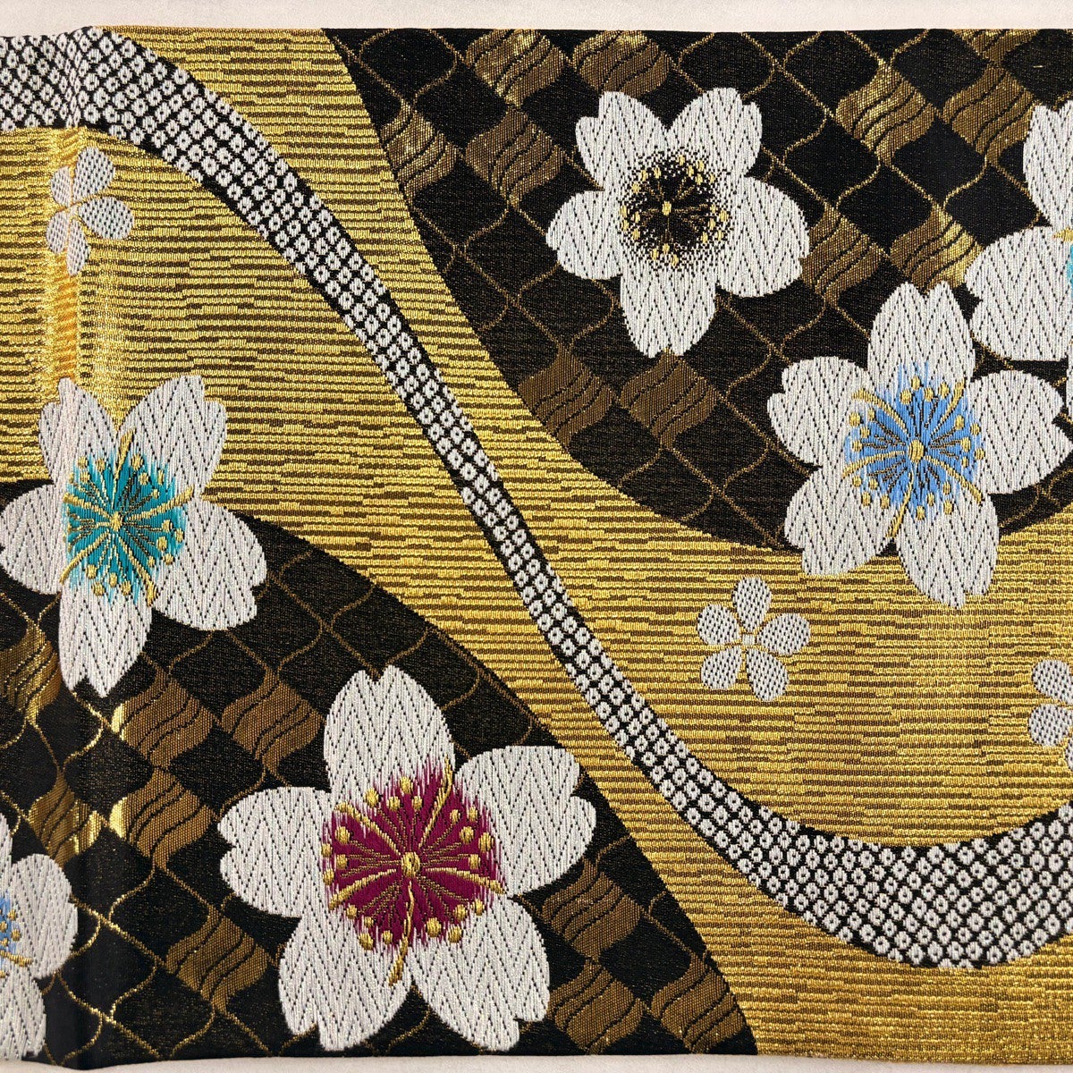 【美品】 袋帯 秀品 桜 市松 箔 金糸 金色 六通 正絹