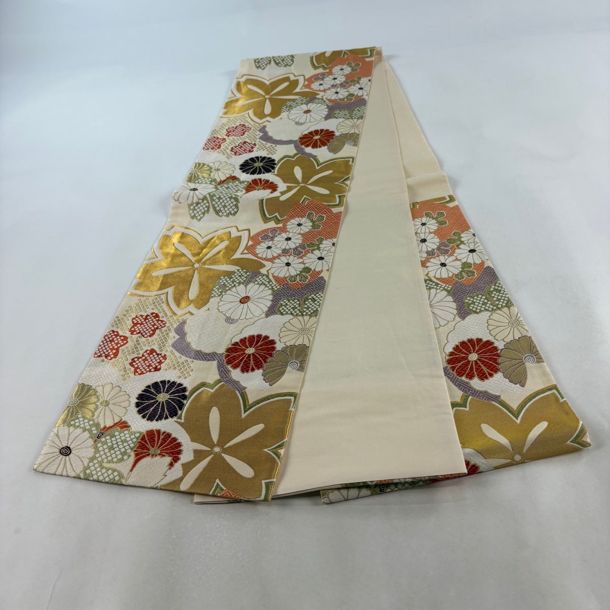 袋帯 秀品 桜 菊 金糸 唐織 ベージュ 六通 正絹