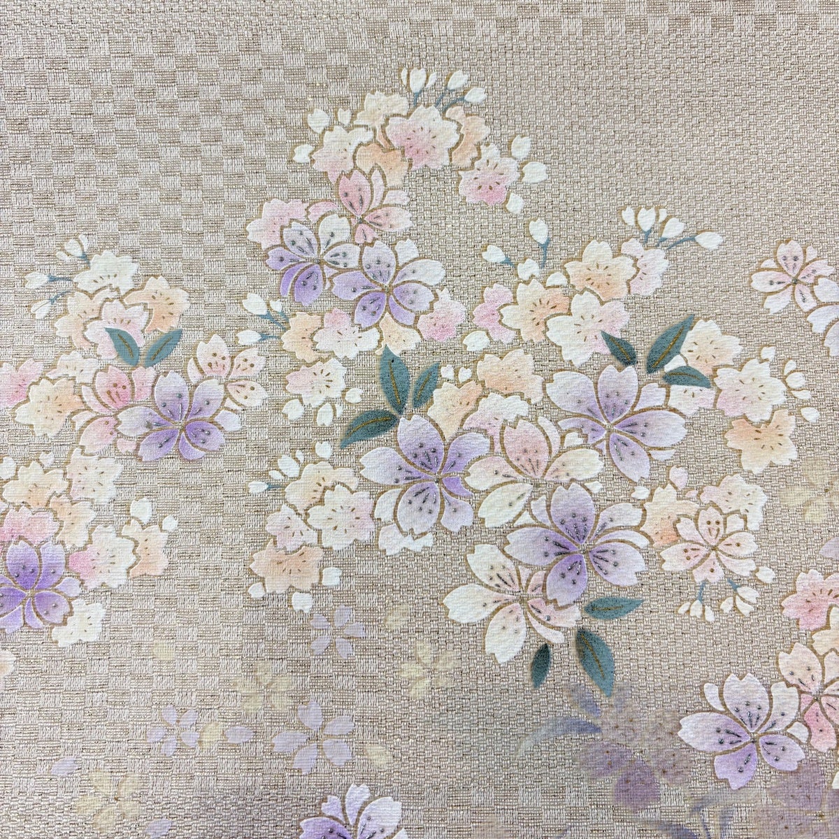 袋帯 秀品 振袖向き 桜 市松 金糸 箔 金茶 六通 正絹
