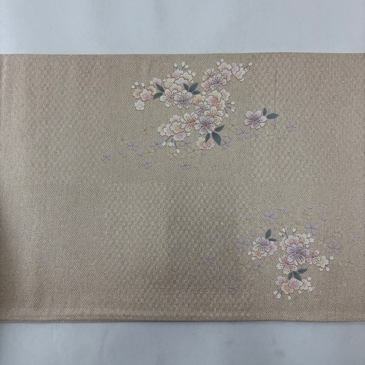 袋帯 秀品 桜 金銀彩 箔 ベージュ お太鼓柄 正絹