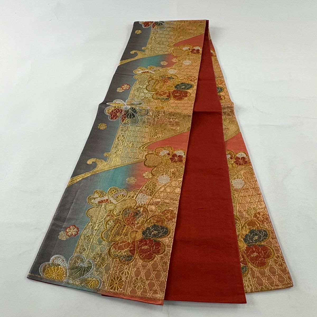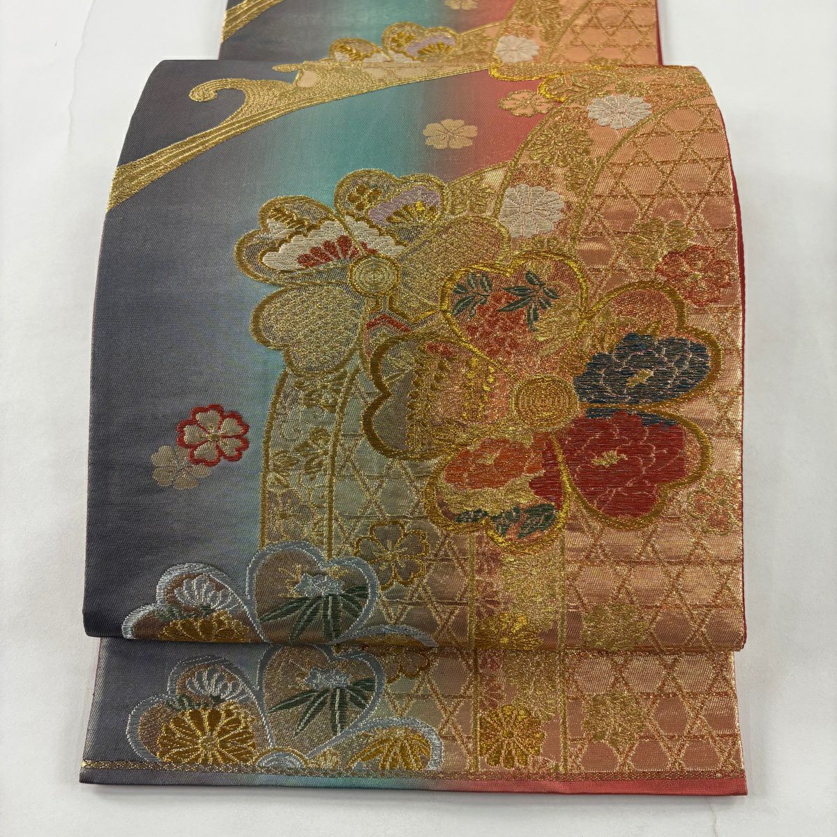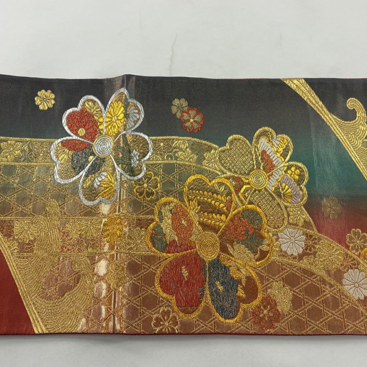 【美品】 袋帯 秀品 桜 菱 金銀糸 箔 赤 六通 正絹