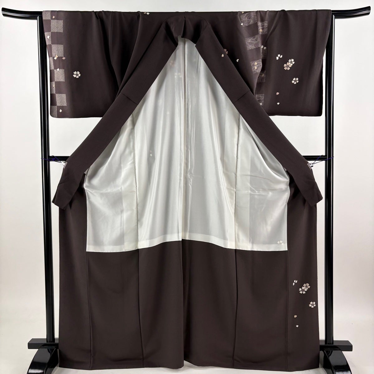 振袖 身丈150.5cm 裄丈61cm S 袷 鈴乃屋 桜 幾何学 銀通し 金彩 濃紫 正絹 名品