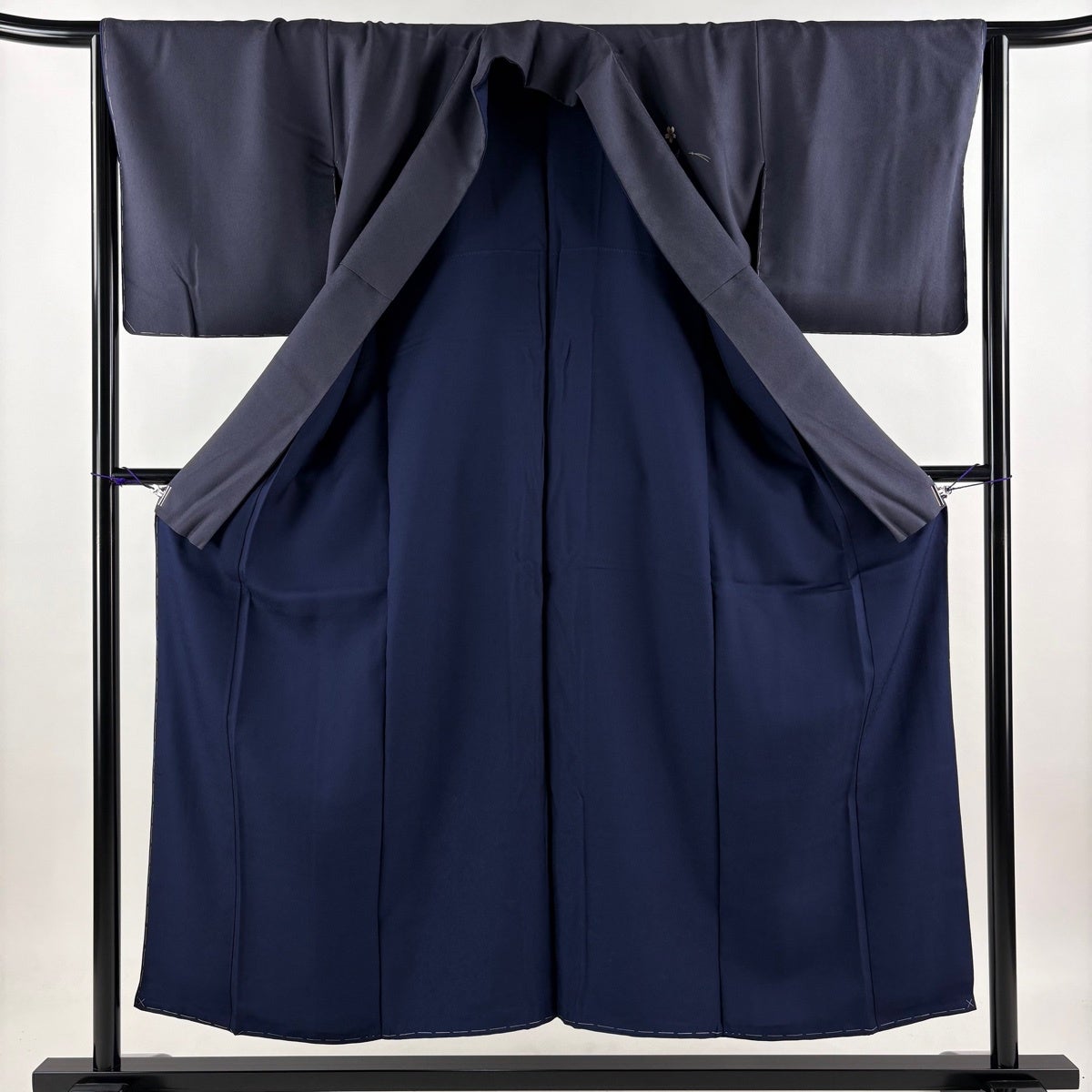 付下げ 身丈164cm 裄丈64.5cm M 袷 紬地 落款あり 桜 桜の花びら 絞り ぼかし 灰色 正絹 名品