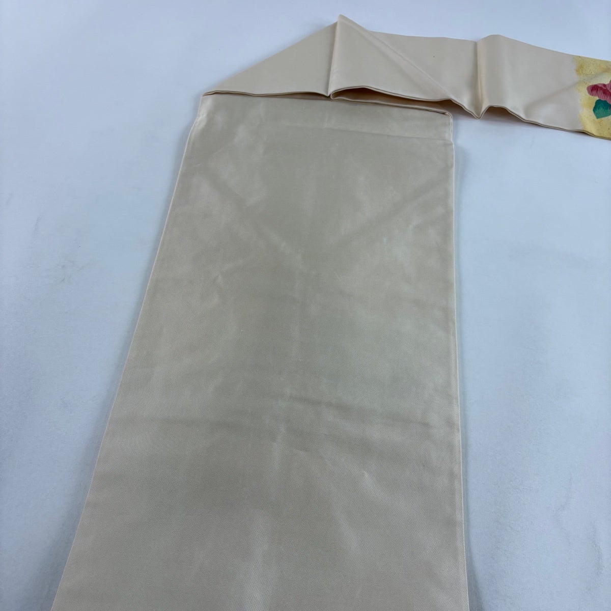 名古屋帯 秀品 夏帯 八寸名古屋 松葉仕立て 椿 桔梗 金銀糸 クリーム 正絹