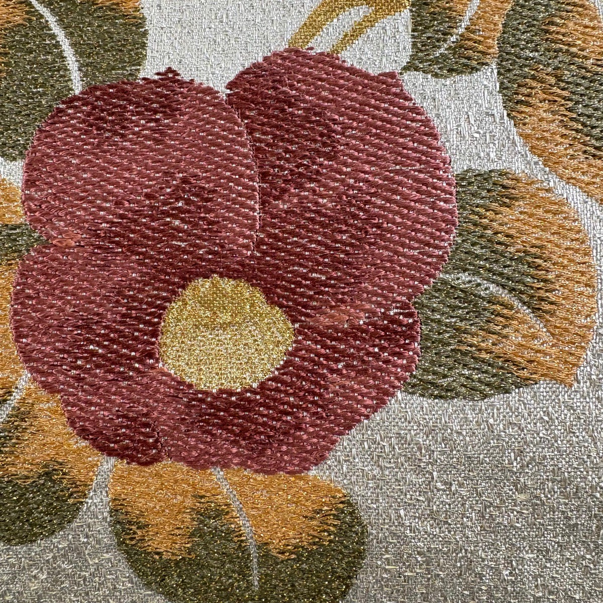 【美品】 袋帯 名品 椿 桔梗 金銀糸 箔 薄オレンジ お太鼓柄 正絹