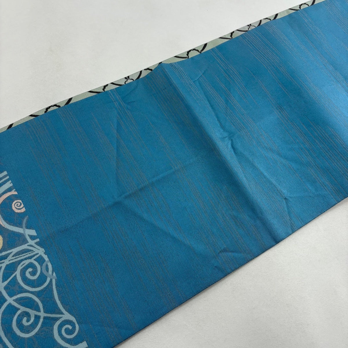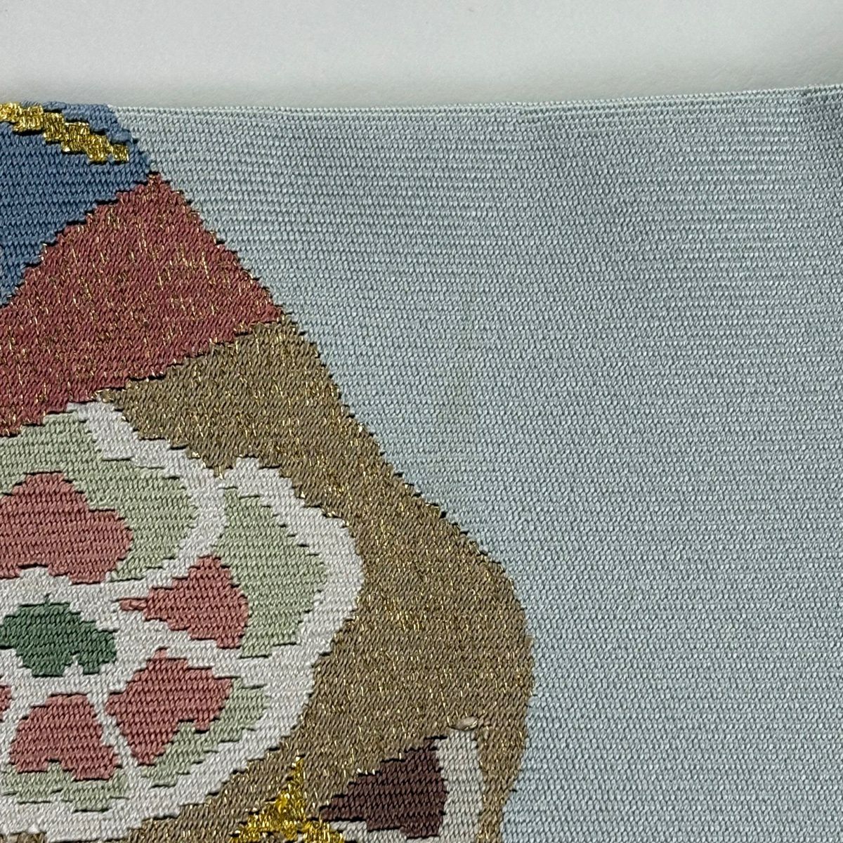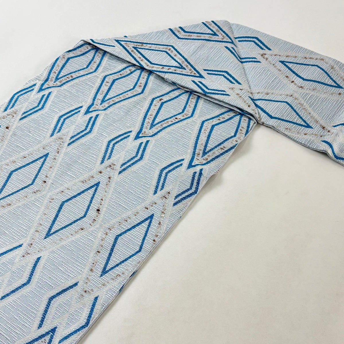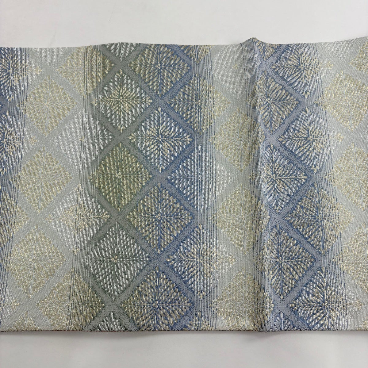 30%OFF 【美品】 袋帯 名品 幾何学模様 金銀糸 水色 全通 正絹 K30