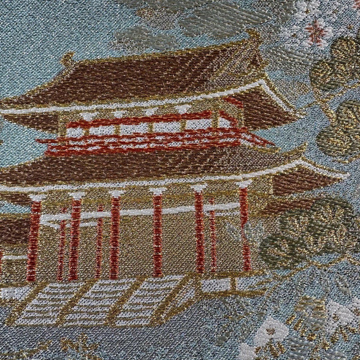 40%OFF 袋帯 逸品 笠松 橋 金銀糸 水色 お太鼓柄 正絹 K30