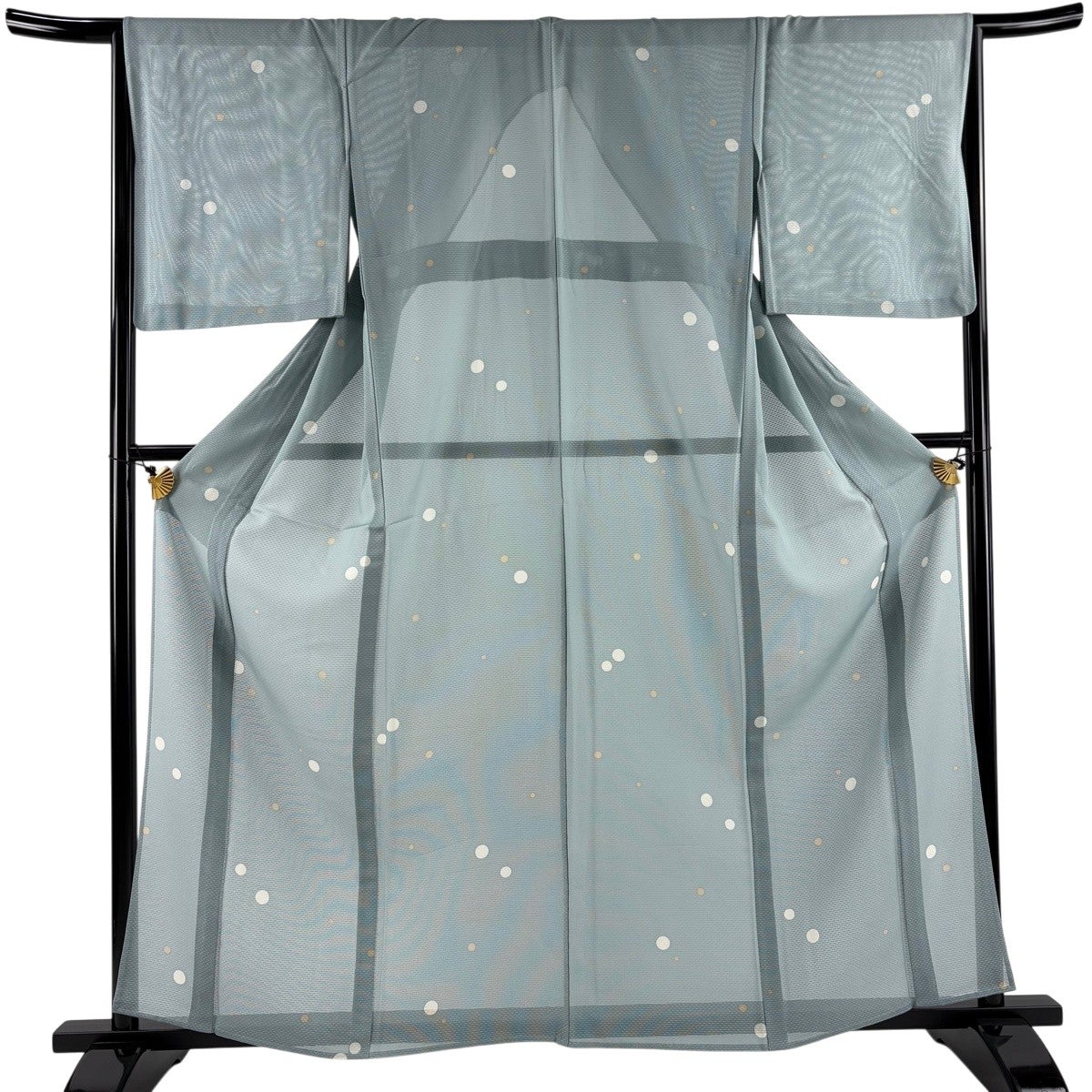 小紋 身丈157.5cm 裄丈65.5cm M 薄物 絽 蕪 唐辛子 水色 正絹 秀品