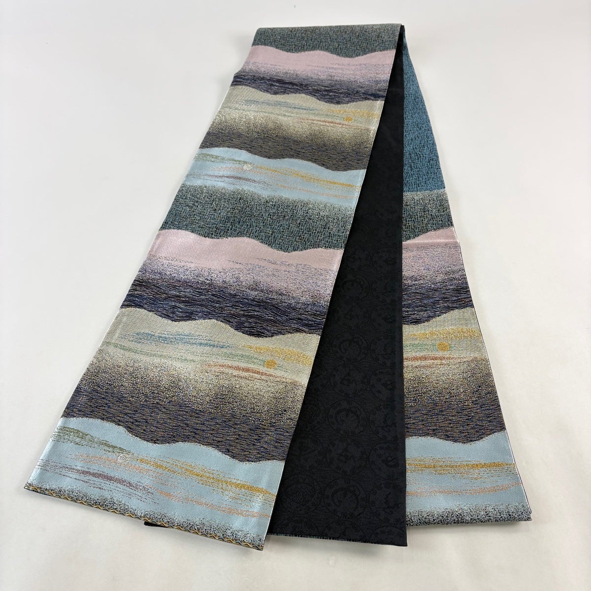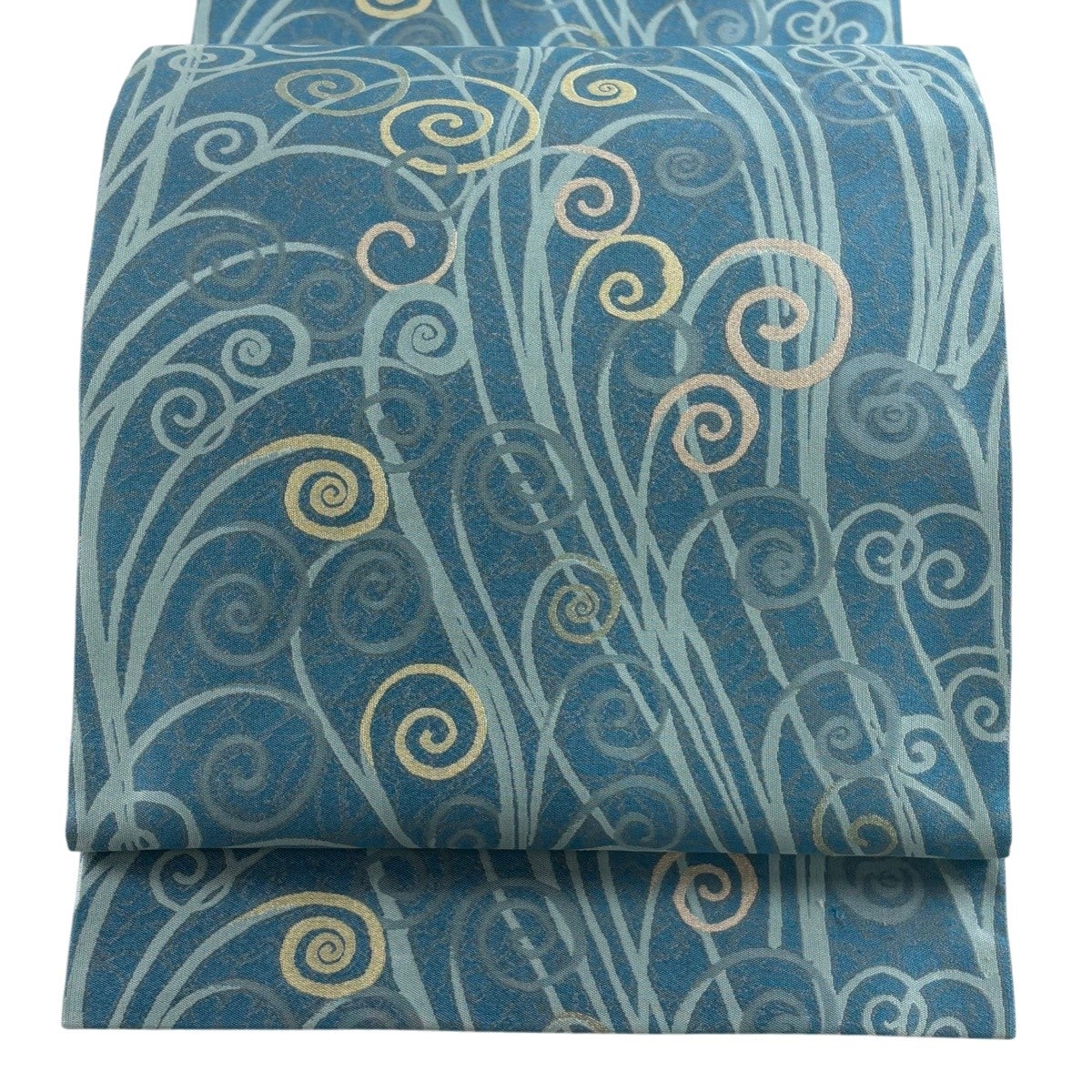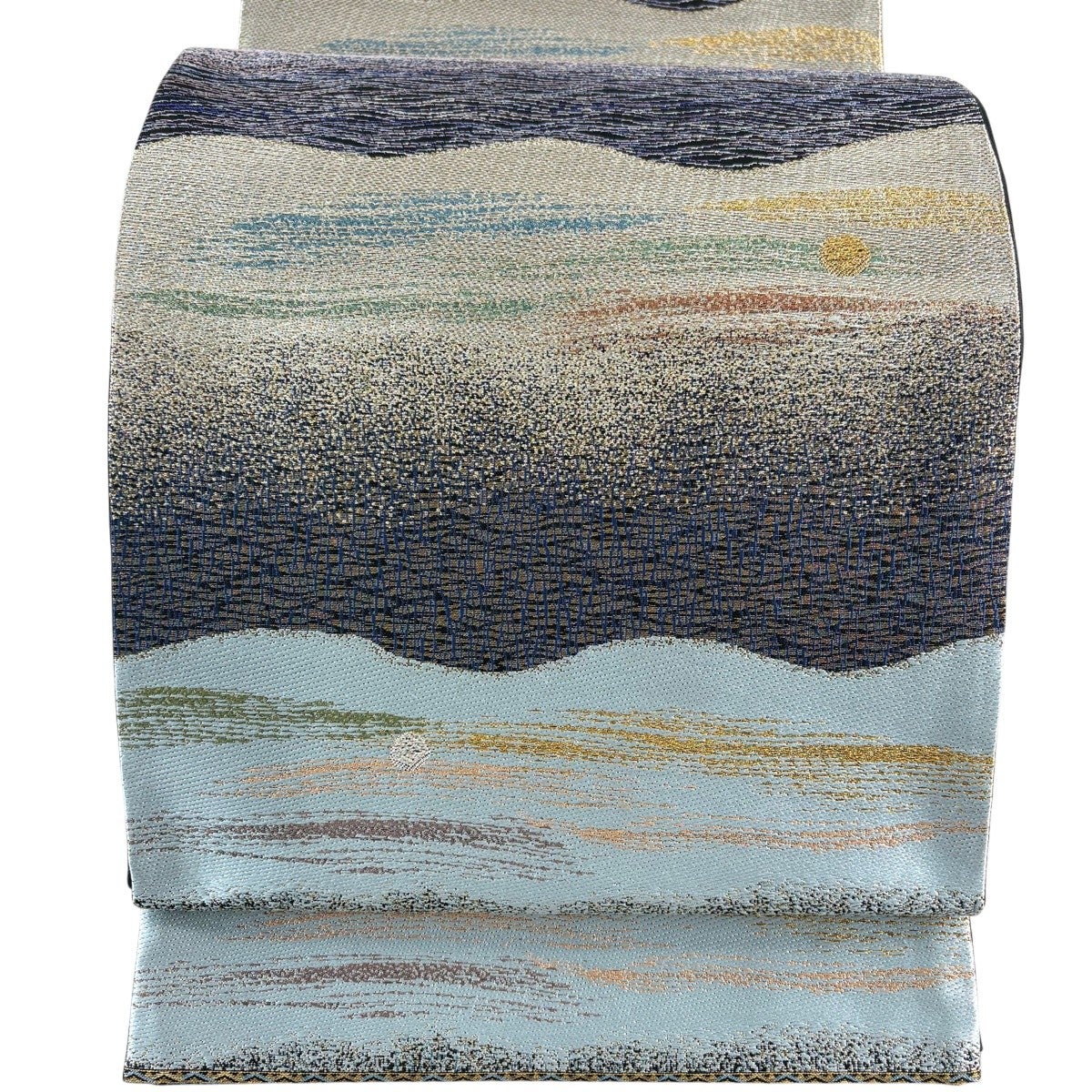30%OFF 【美品】 袋帯 秀品 船 波 唐織 箔 水色 六通 正絹 K30