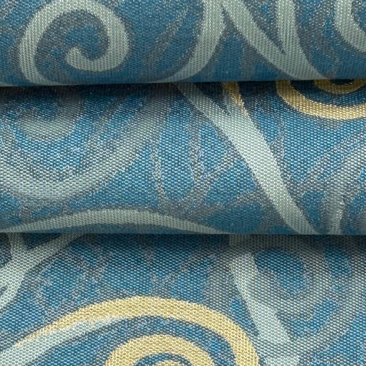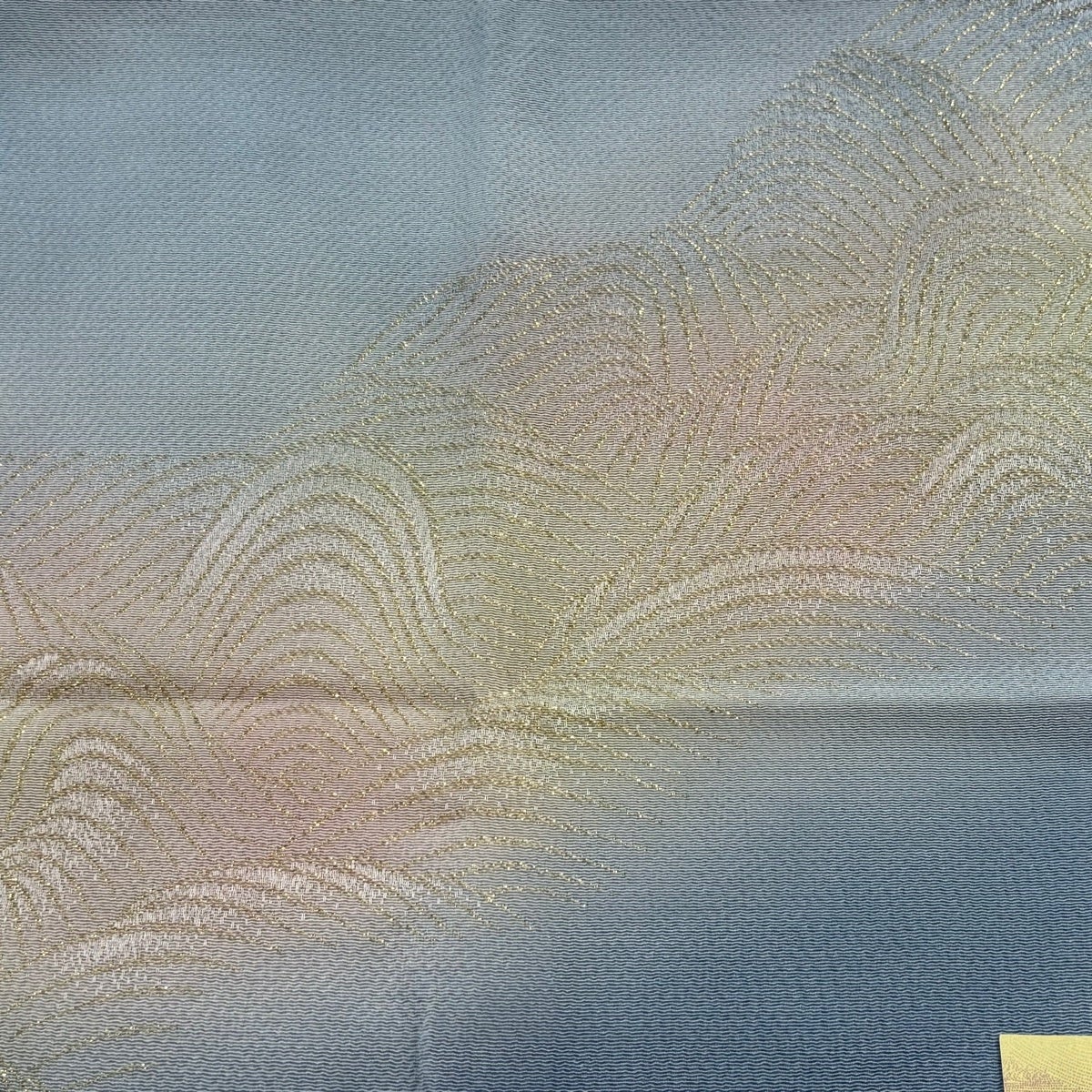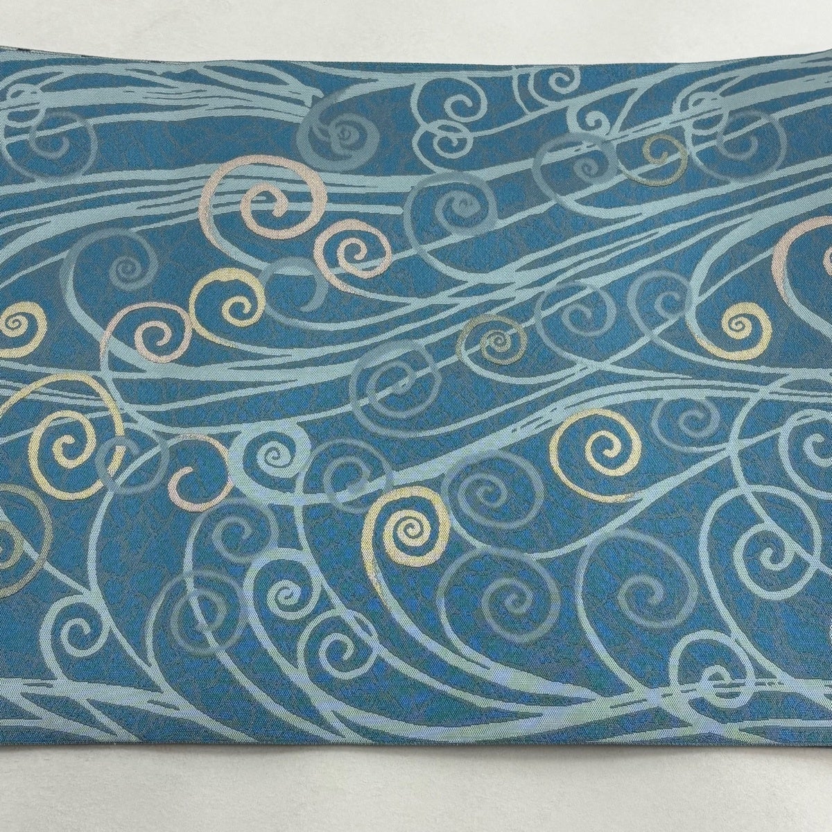30%OFF 【美品】 袋帯 秀品 船 波 唐織 箔 水色 六通 正絹 K30