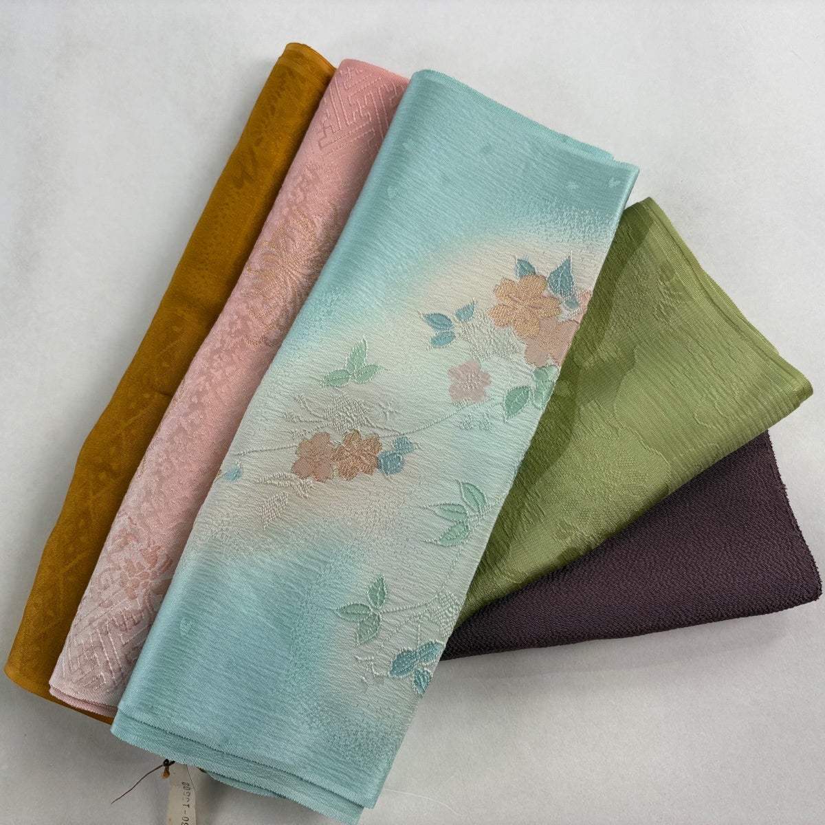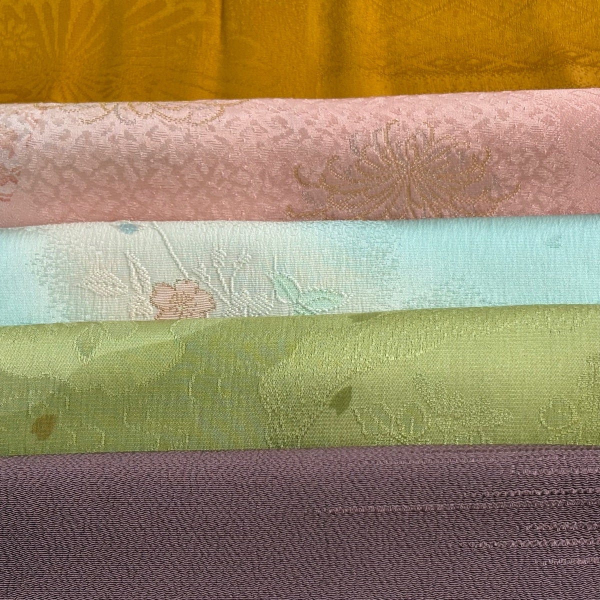 50%OFF 袋帯 名品 花菱 桜 刺繍 箔 水色 六通 正絹 K50