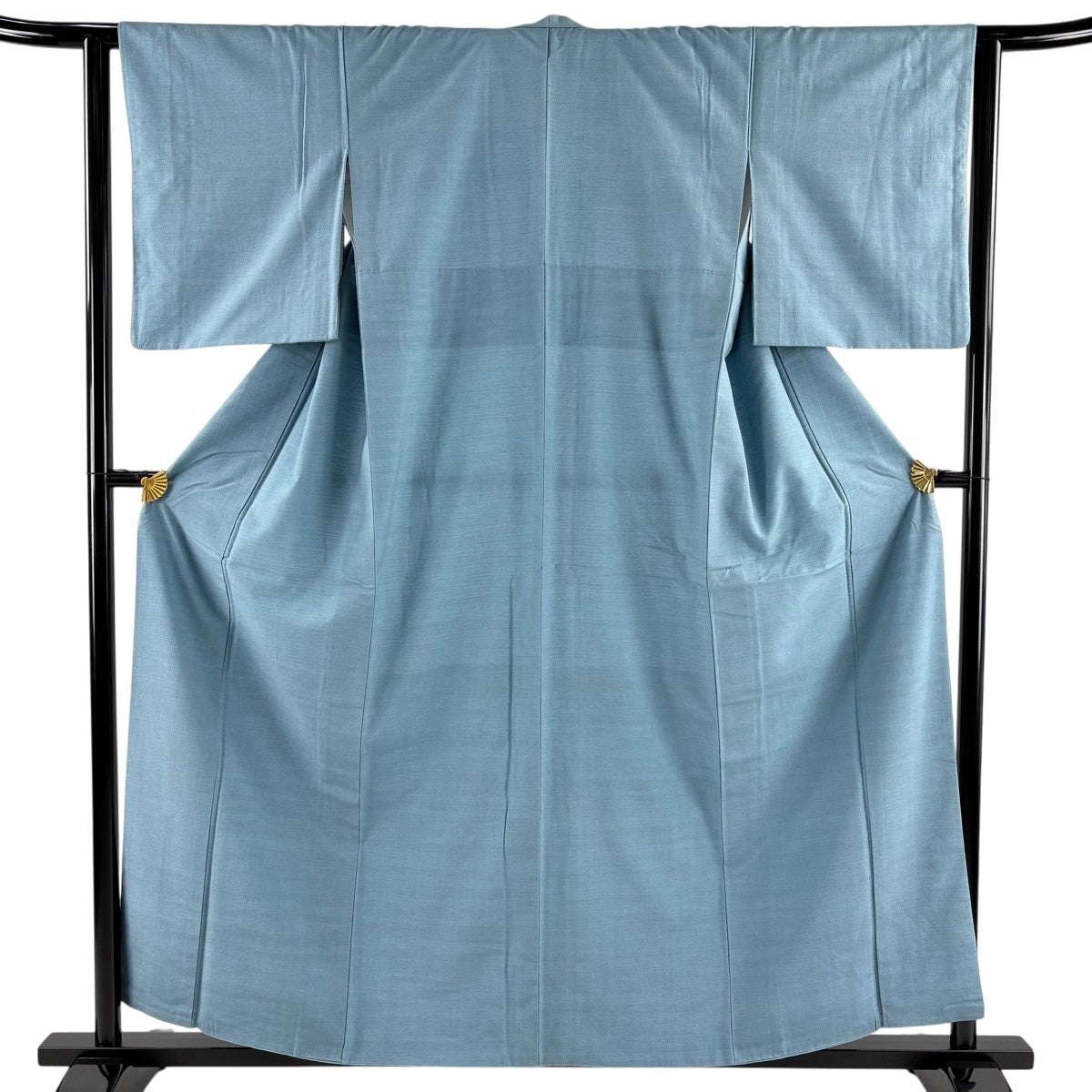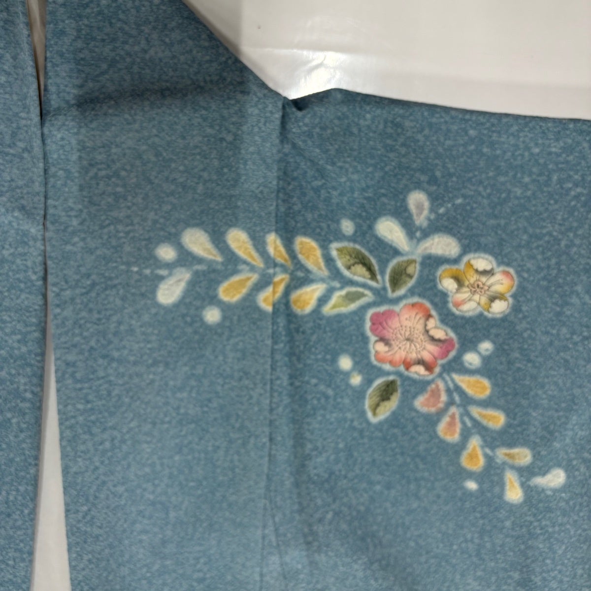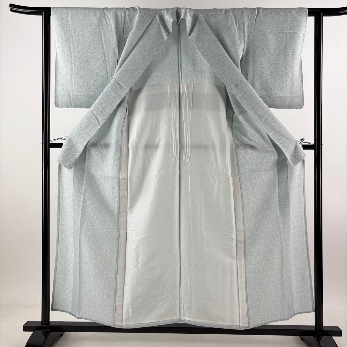 【美品】 お召 身丈155cm 裄丈61.5cm S 単衣 草花 水色 正絹 逸品