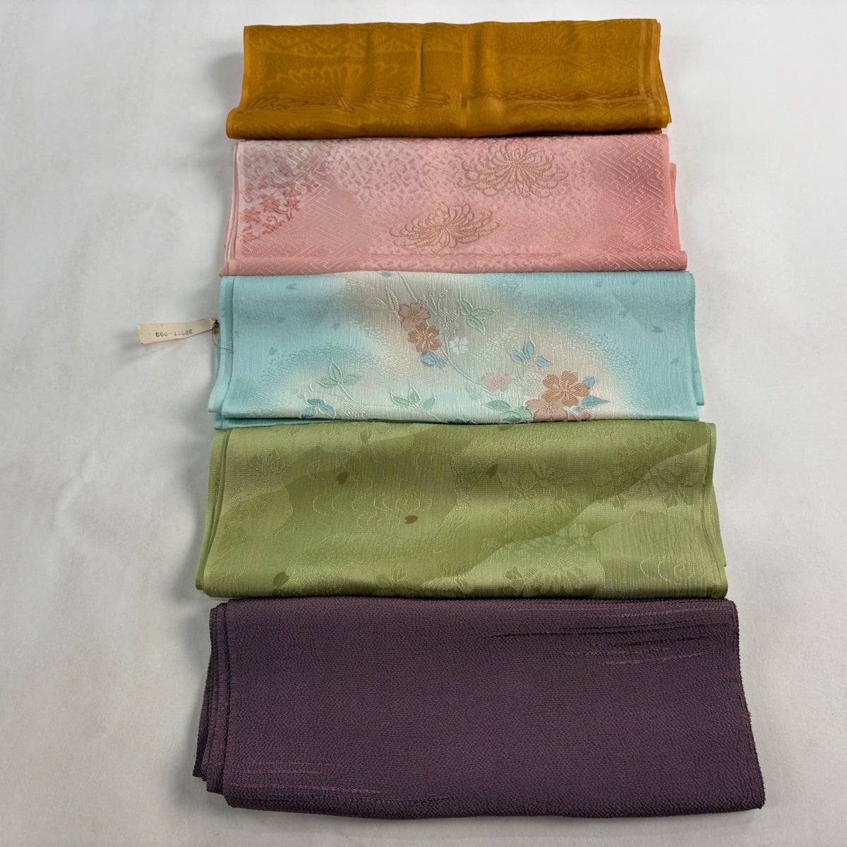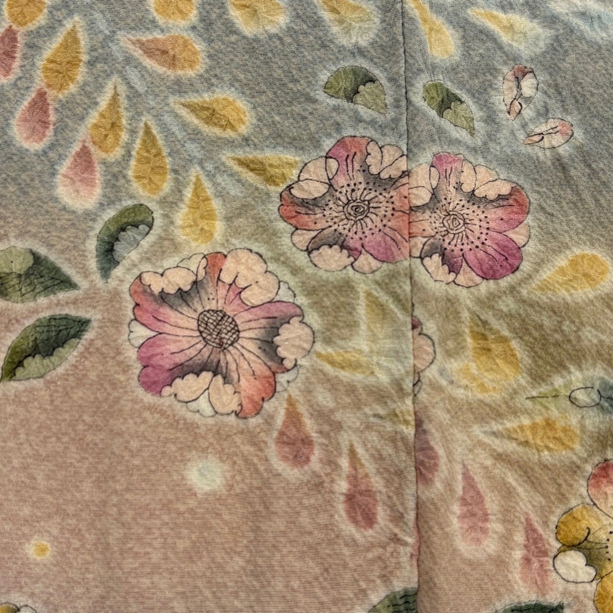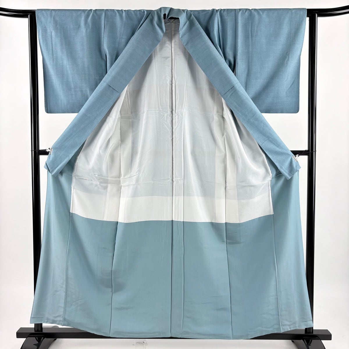 【美品】 お召 身丈155cm 裄丈61.5cm S 単衣 草花 水色 正絹 逸品