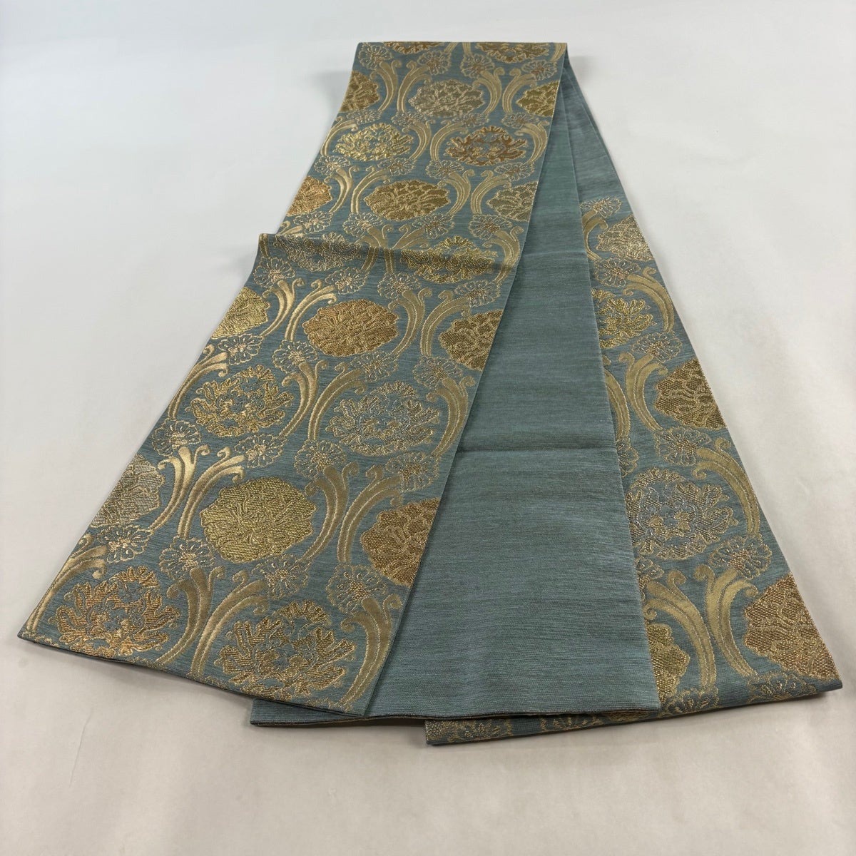 30%OFF 袋帯 秀品 関西仕立て 花唐草 箔 水色 六通 正絹 K30