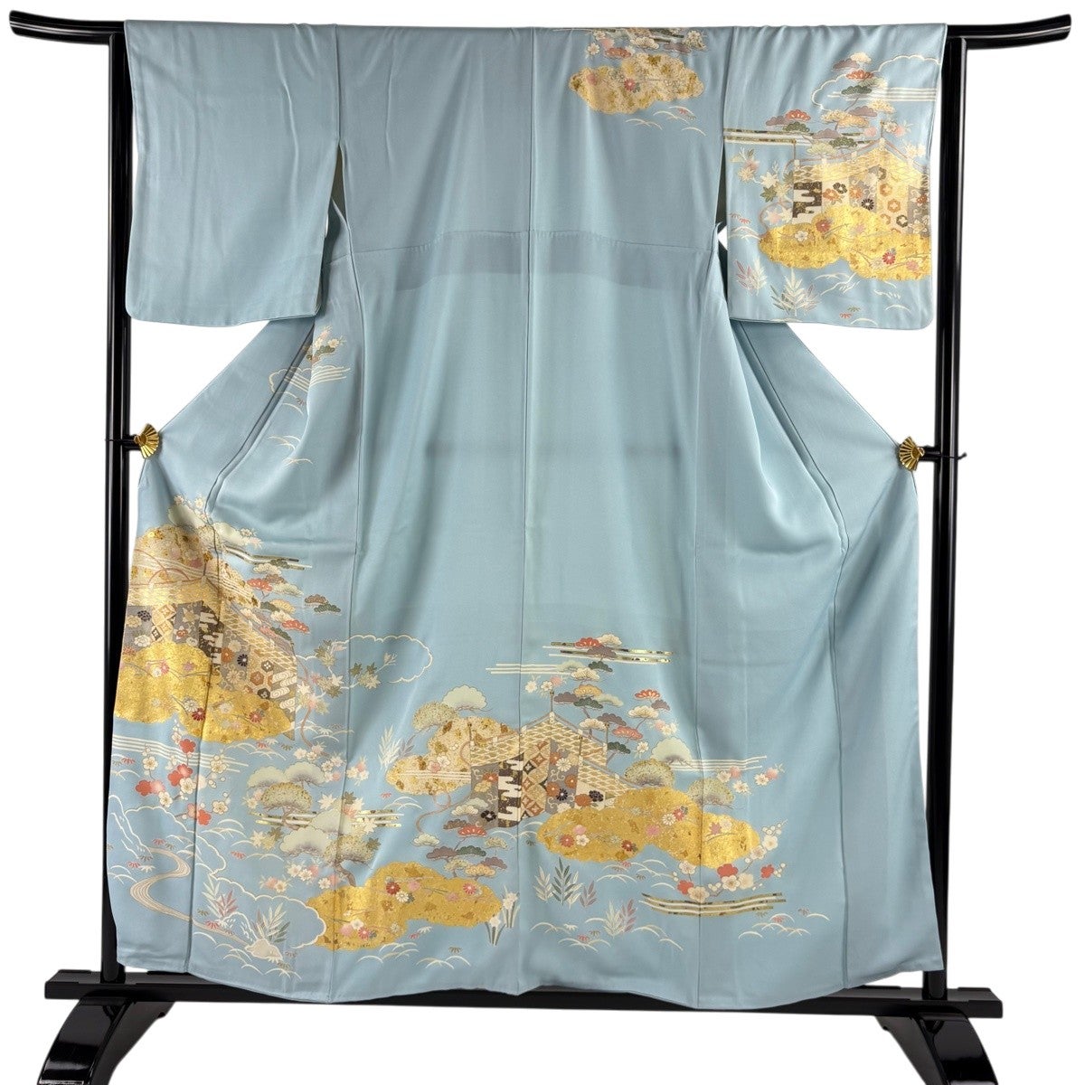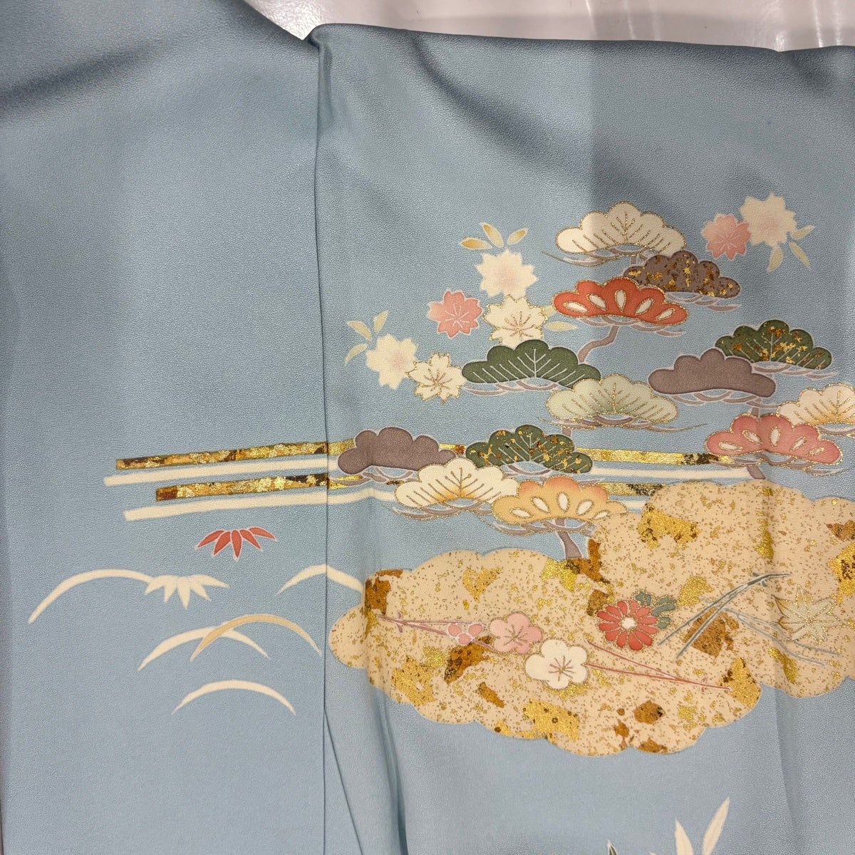 訪問着 身丈158cm 裄丈64cm M 袷 幔幕 松竹梅 金糸 金彩 水色 正絹 秀品