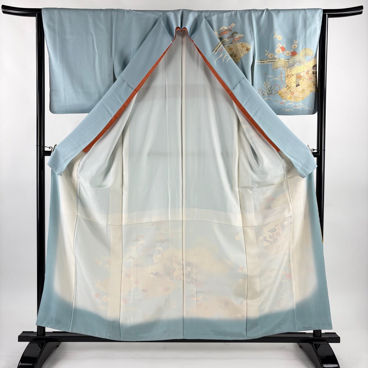 振袖 身丈171cm 裄丈68.5cm L 袷 草花 流水 金彩 ぼかし 水色 正絹 秀品