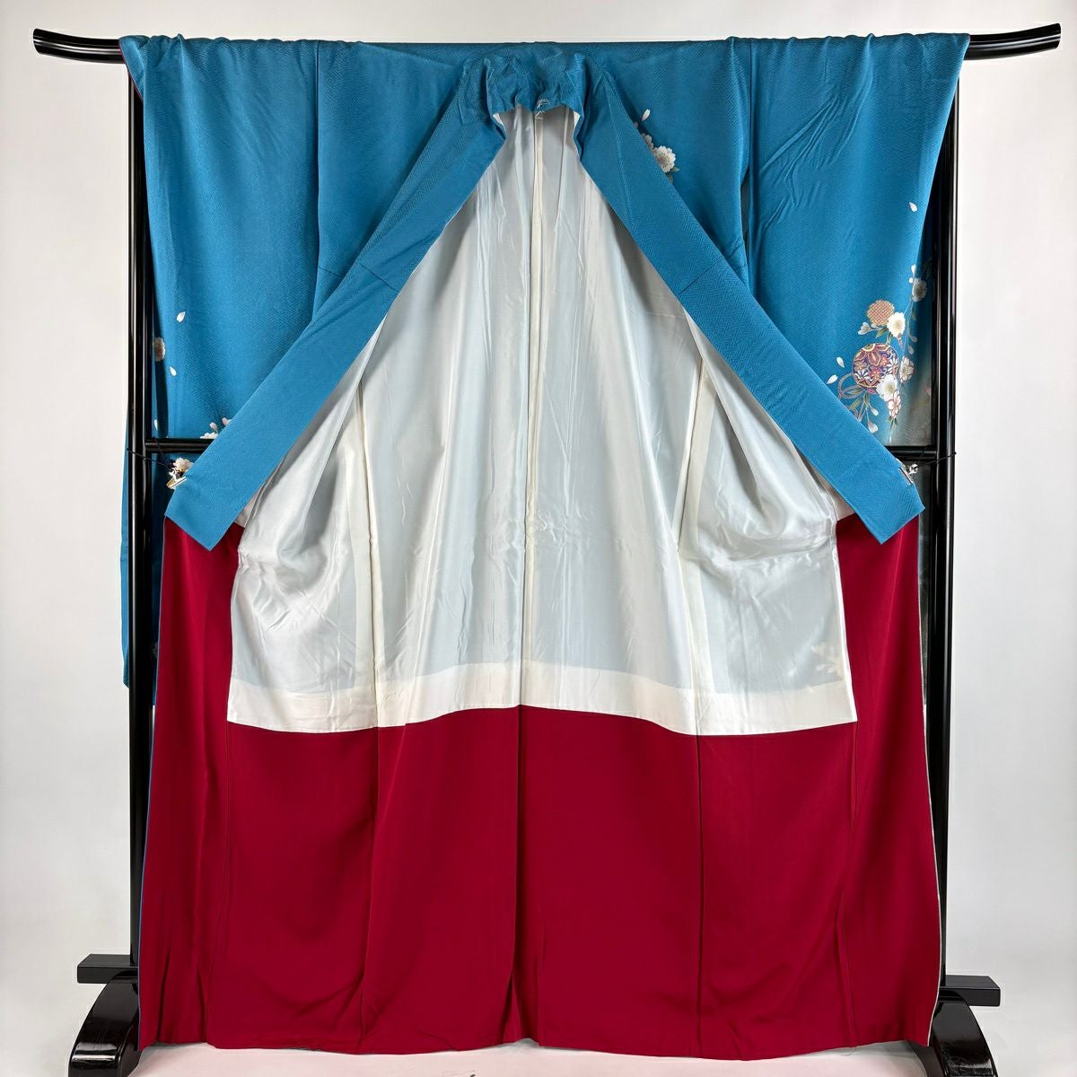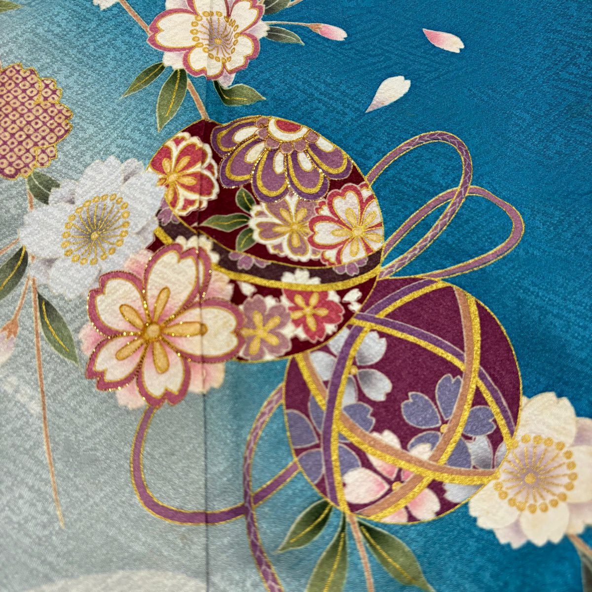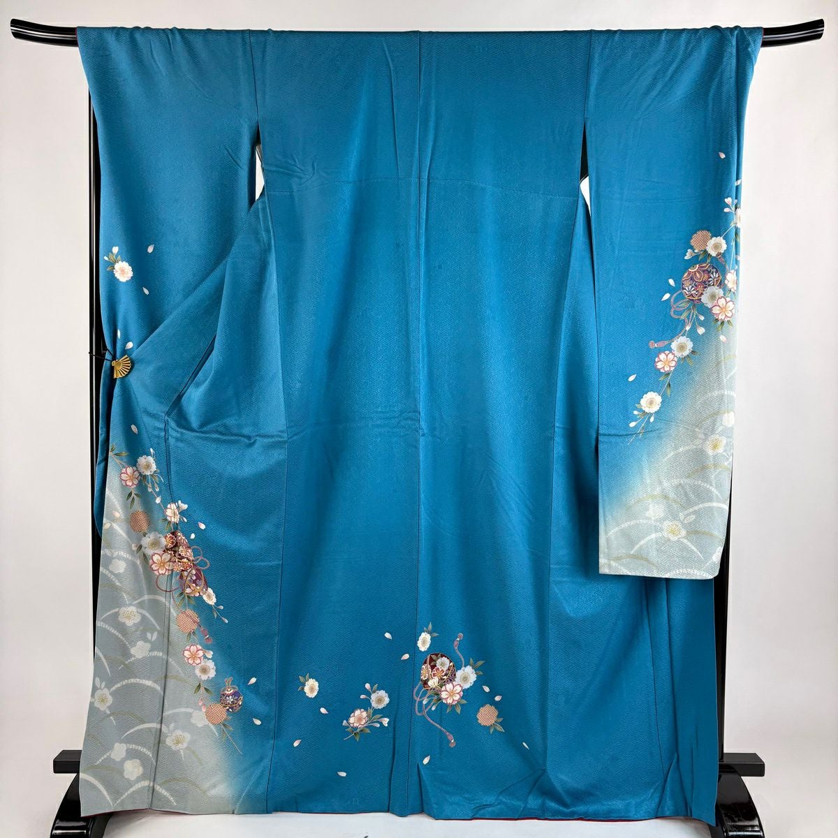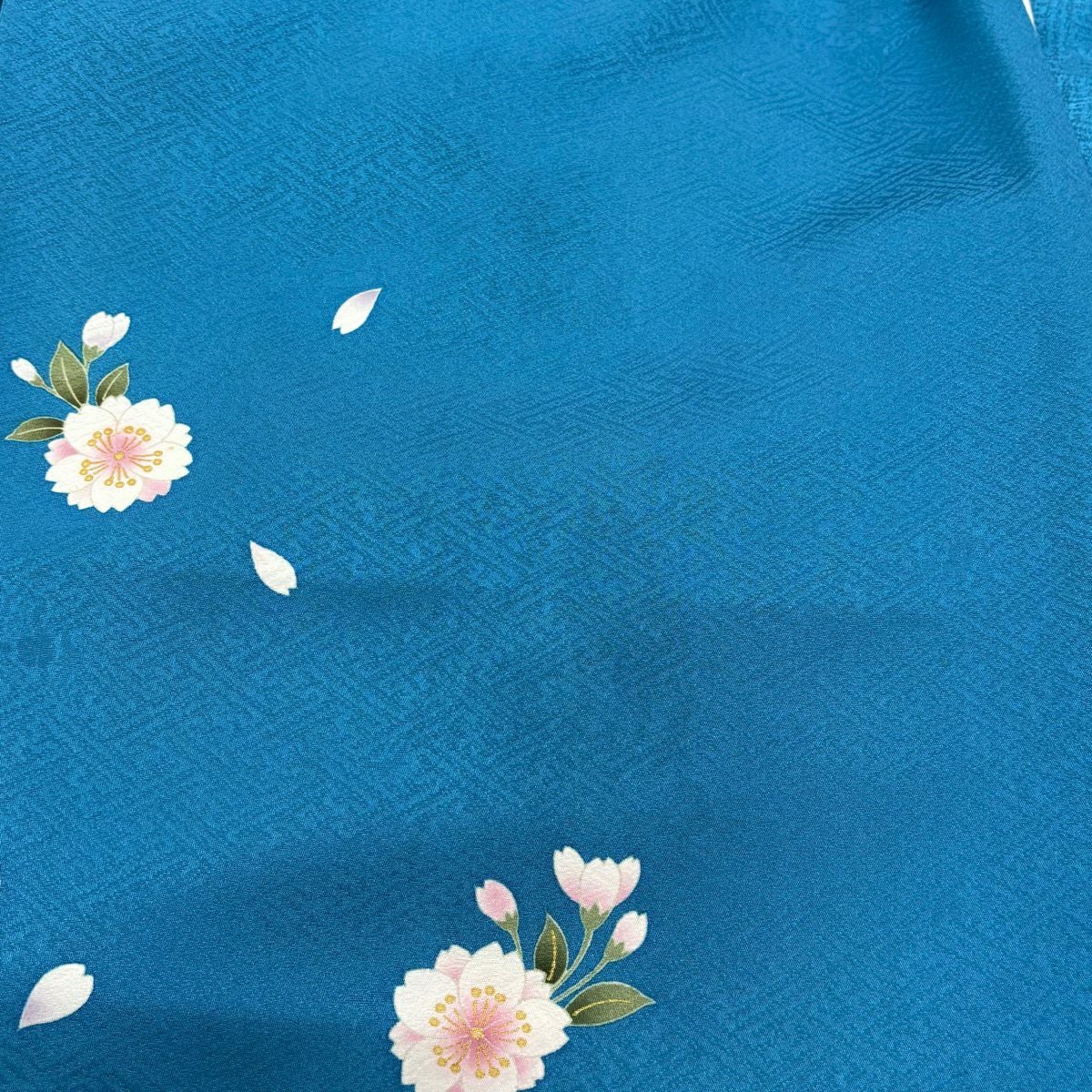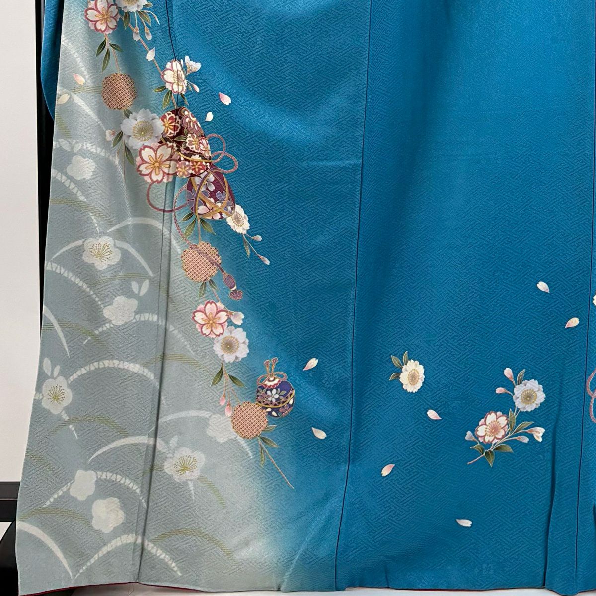 振袖 身丈160cm 裄丈67cm M 袷 桜 花びら 金彩 染め分け 水色 正絹 秀品