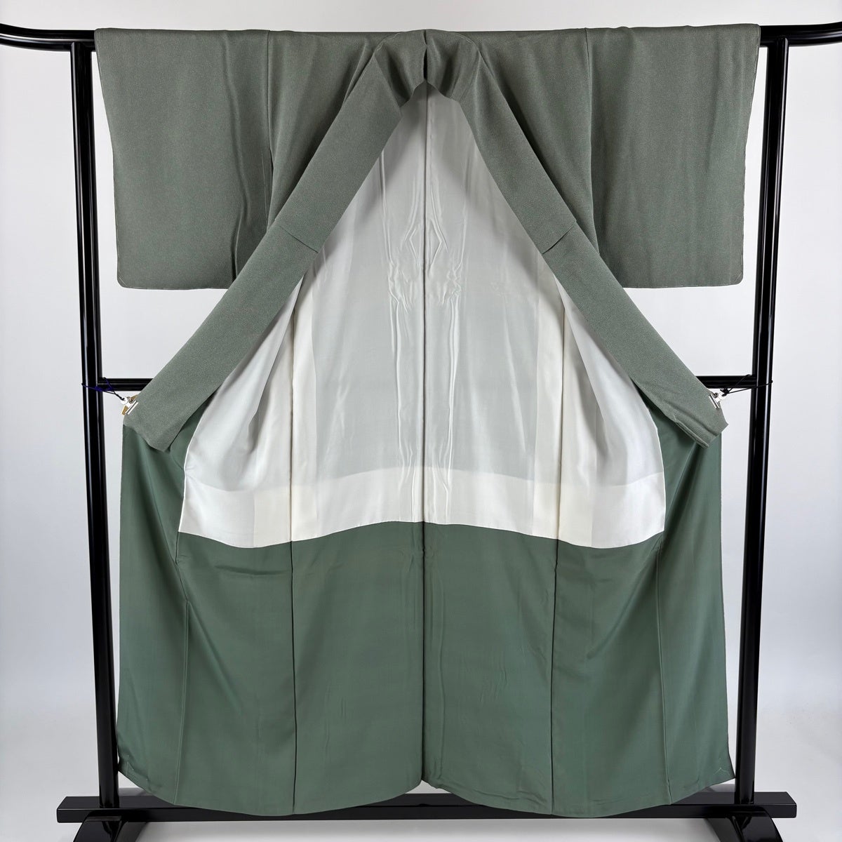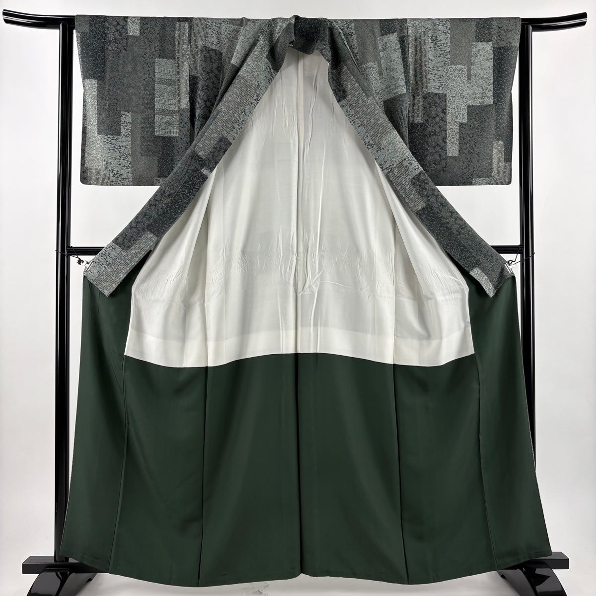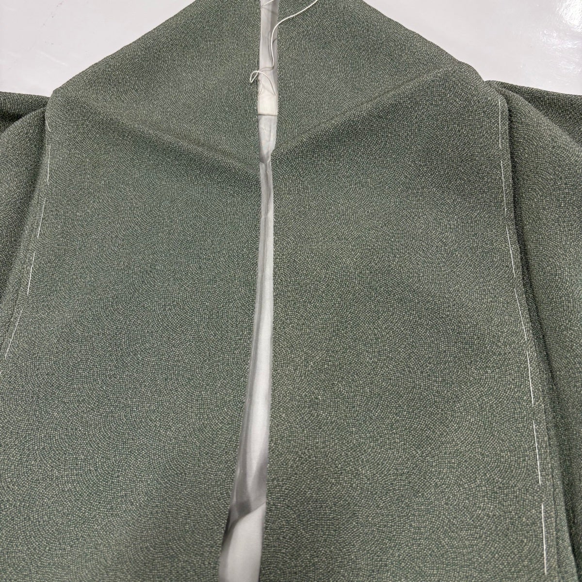江戸小紋 身丈156cm 裄丈62cm S 袷 鮫文様 縮緬 灰緑 正絹 秀品