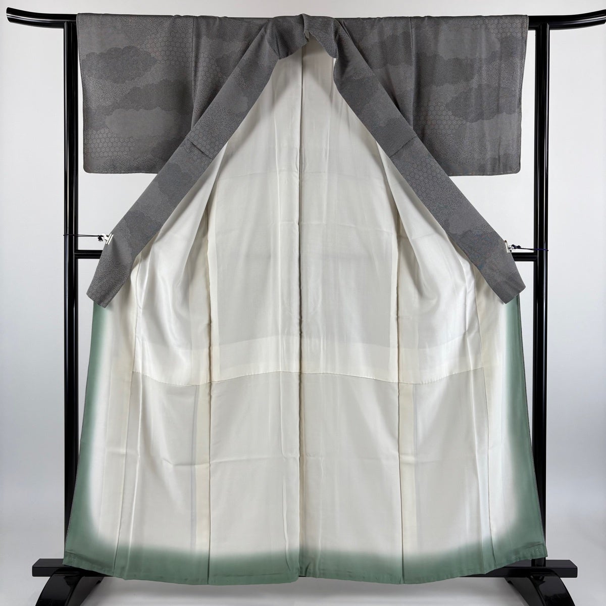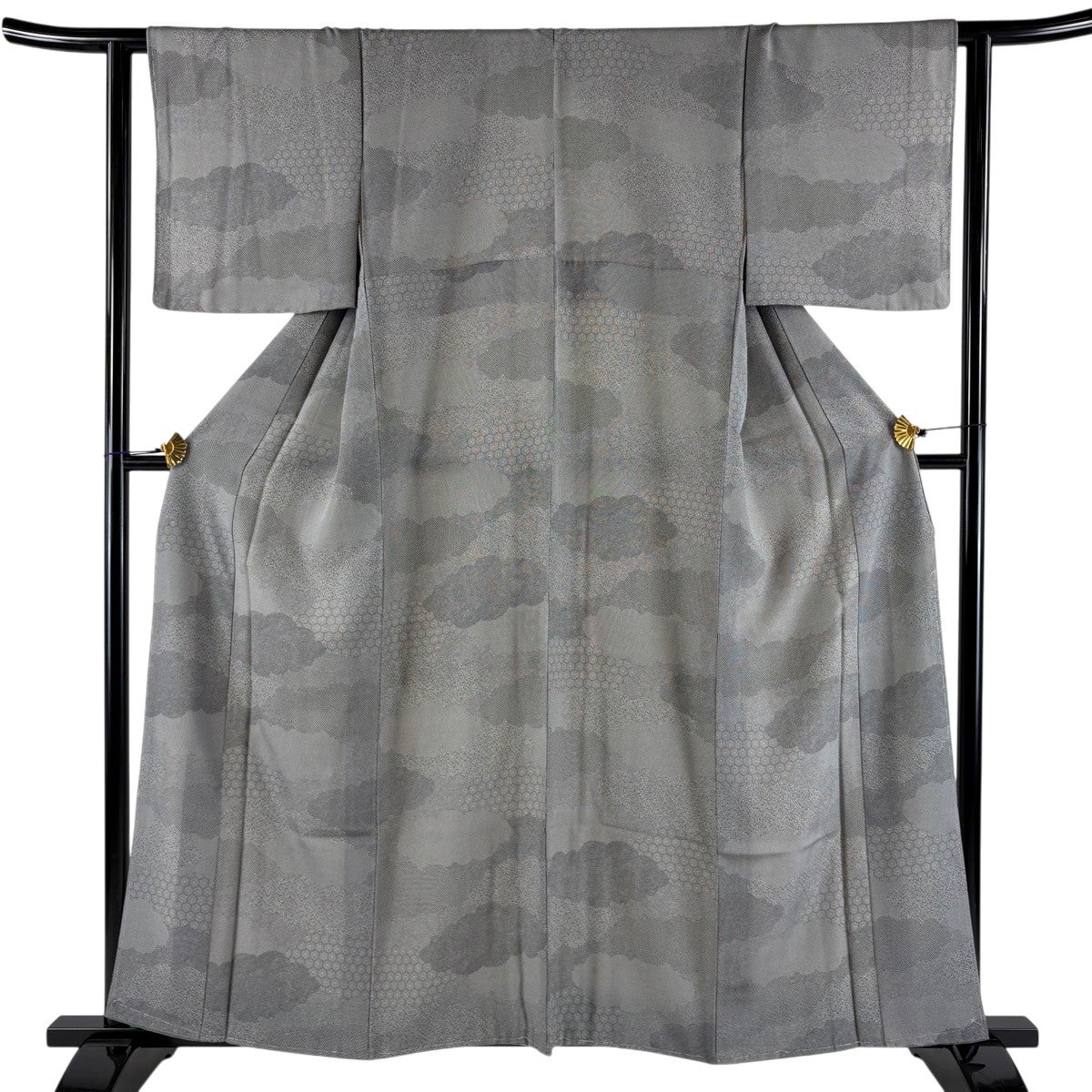 江戸小紋 身丈159cm 裄丈63cm S 袷 雲文 寄せ柄 黒灰 正絹 秀品