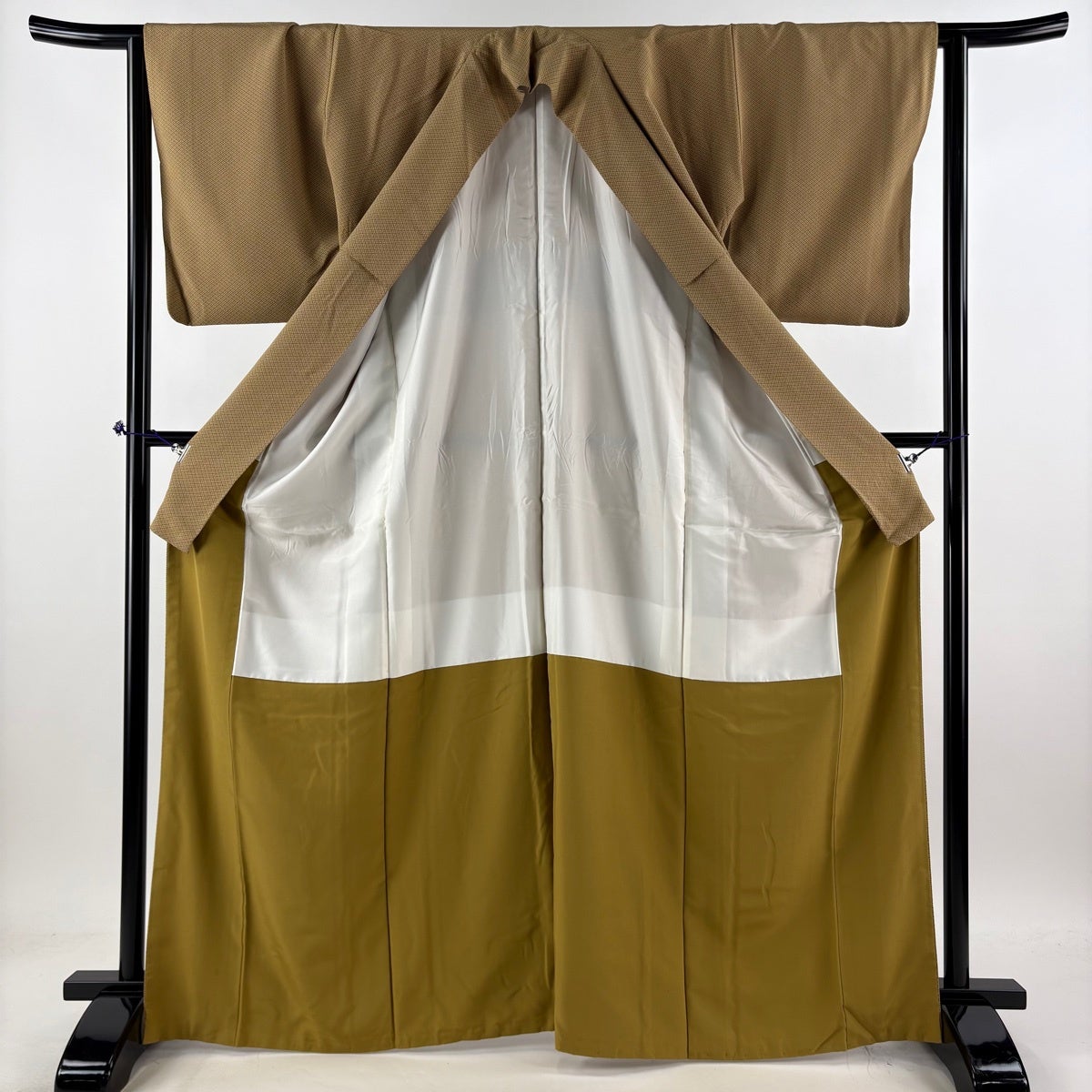 【美品】 江戸小紋 身丈166cm 裄丈63cm S 袷 菱 山吹茶色 正絹 秀品