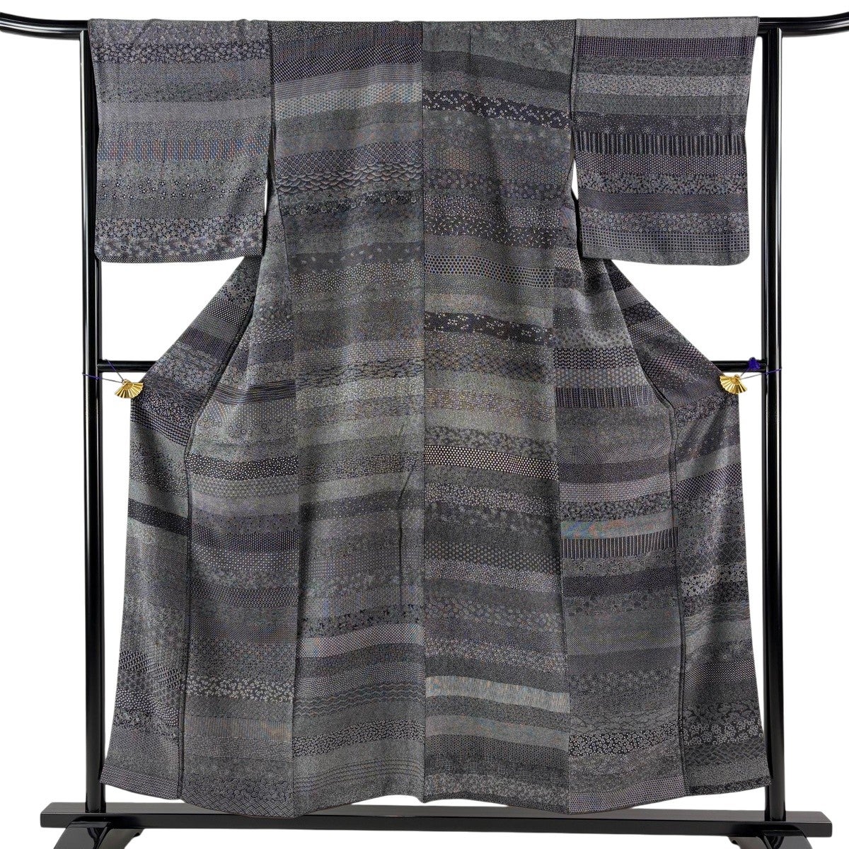 江戸小紋 身丈153cm 裄丈63.5cm S 袷 段縞 折り鶴 黒 正絹 秀品