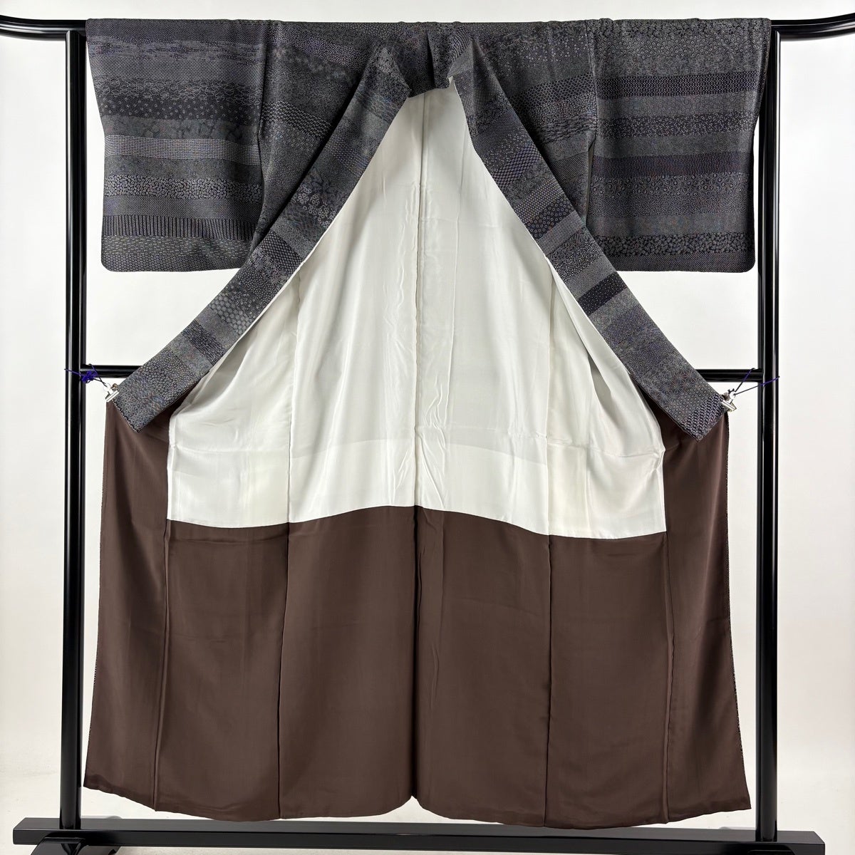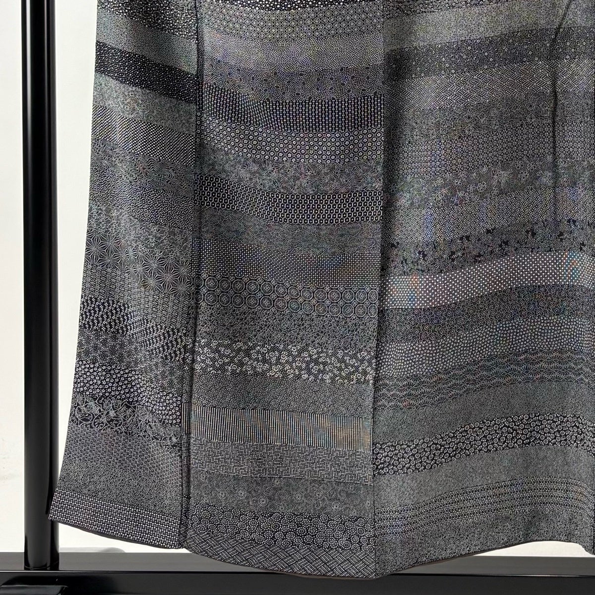 江戸小紋 身丈165.5cm 裄丈70.5cm L 袷 万筋 黒灰 正絹 逸品