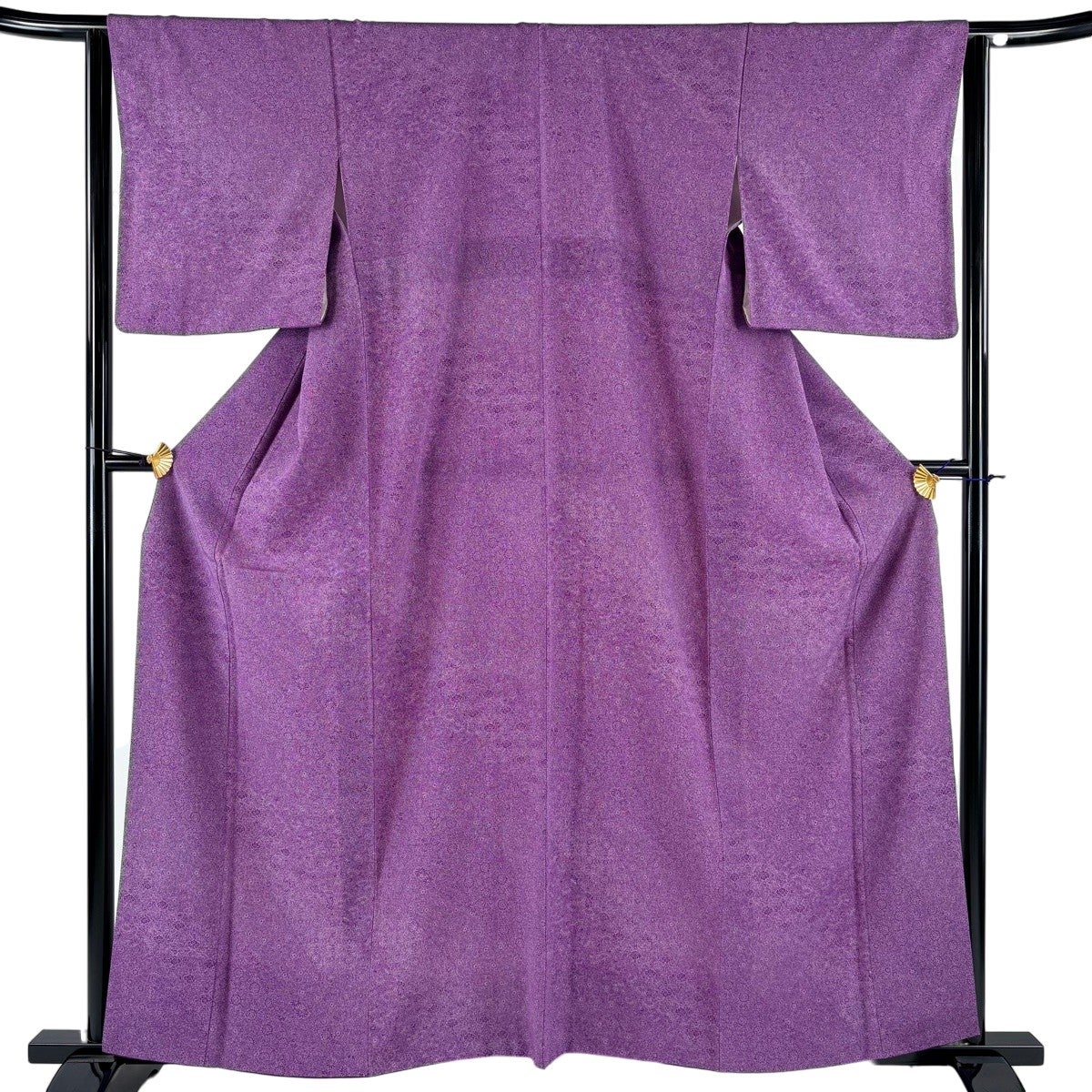 江戸小紋 身丈152cm 裄丈62cm S 袷 落款あり 鮫 縮緬 紫 正絹 秀品 一つ紋
