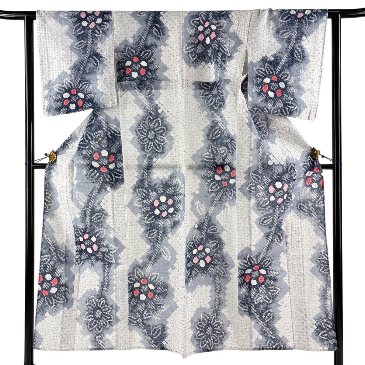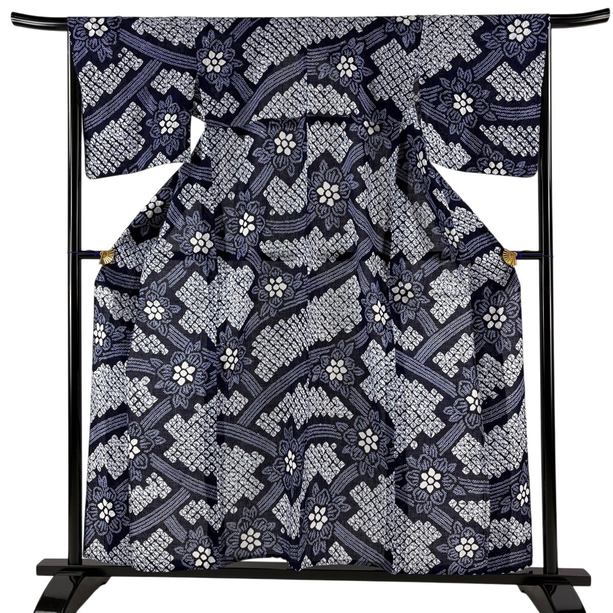 【美品】 浴衣 身丈147cm 裄丈60.5cm S 絞り浴衣 花 亀甲 紺色 綿 名品
