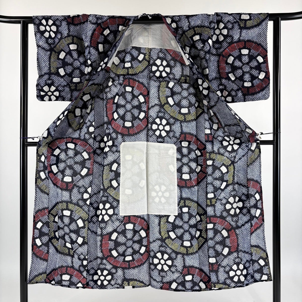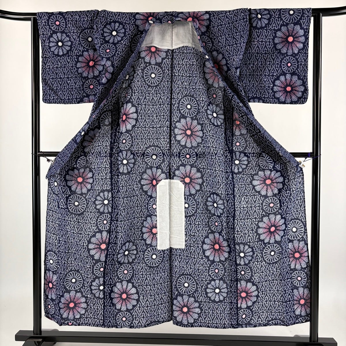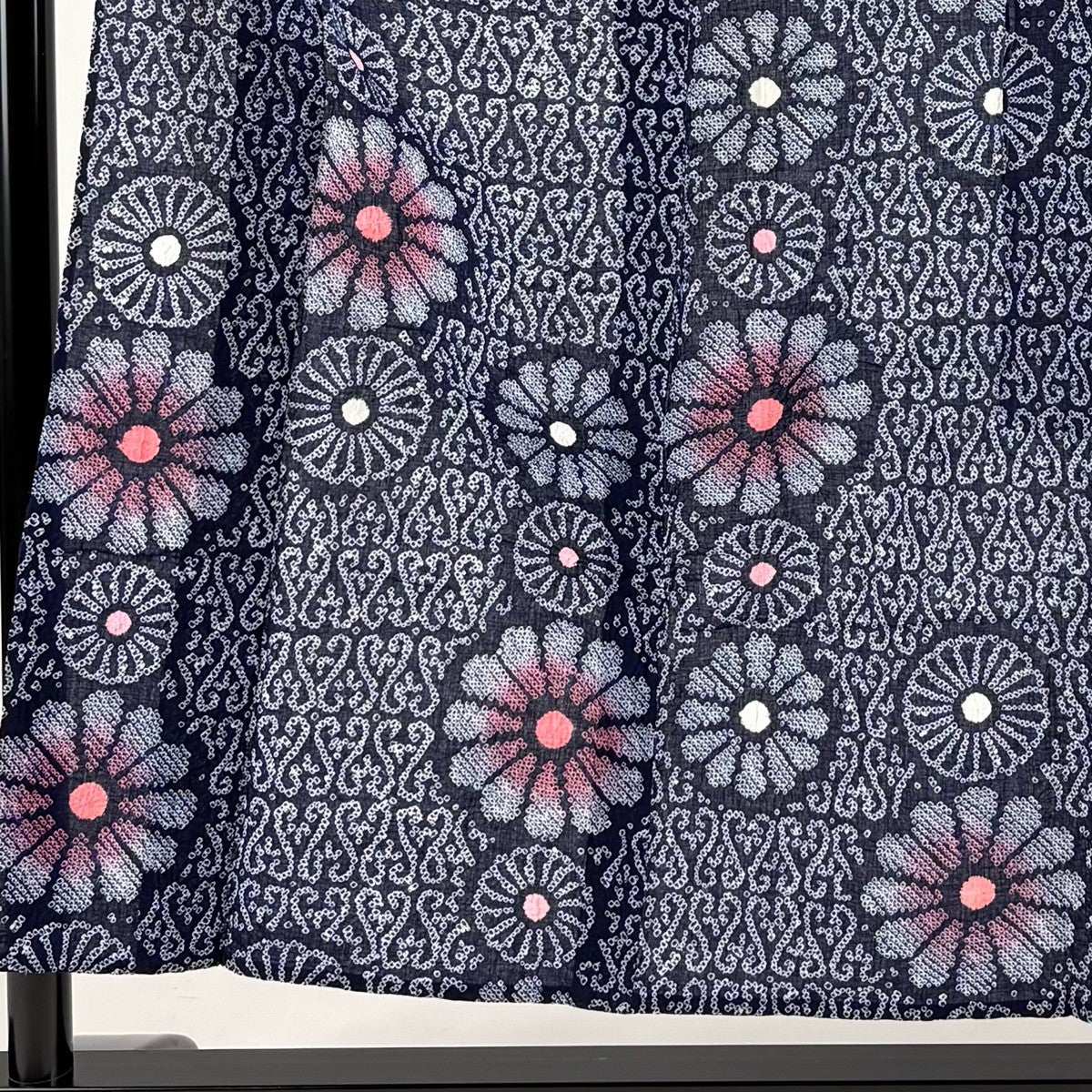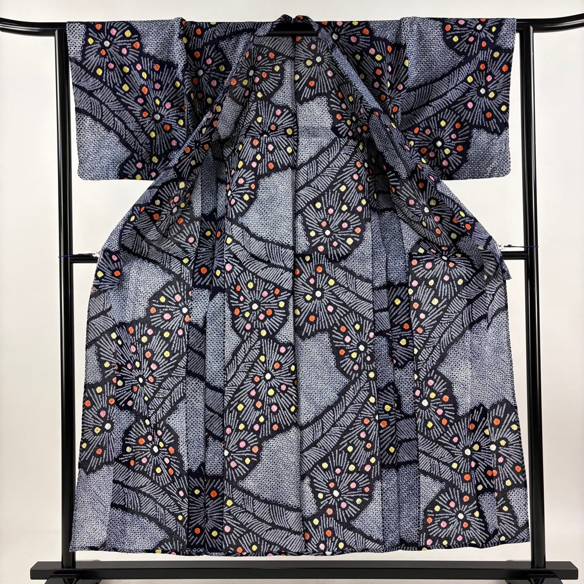 【美品】 浴衣 身丈153cm 裄丈64cm M 絞り浴衣 菊 幾何学模様 紺色 綿 名品