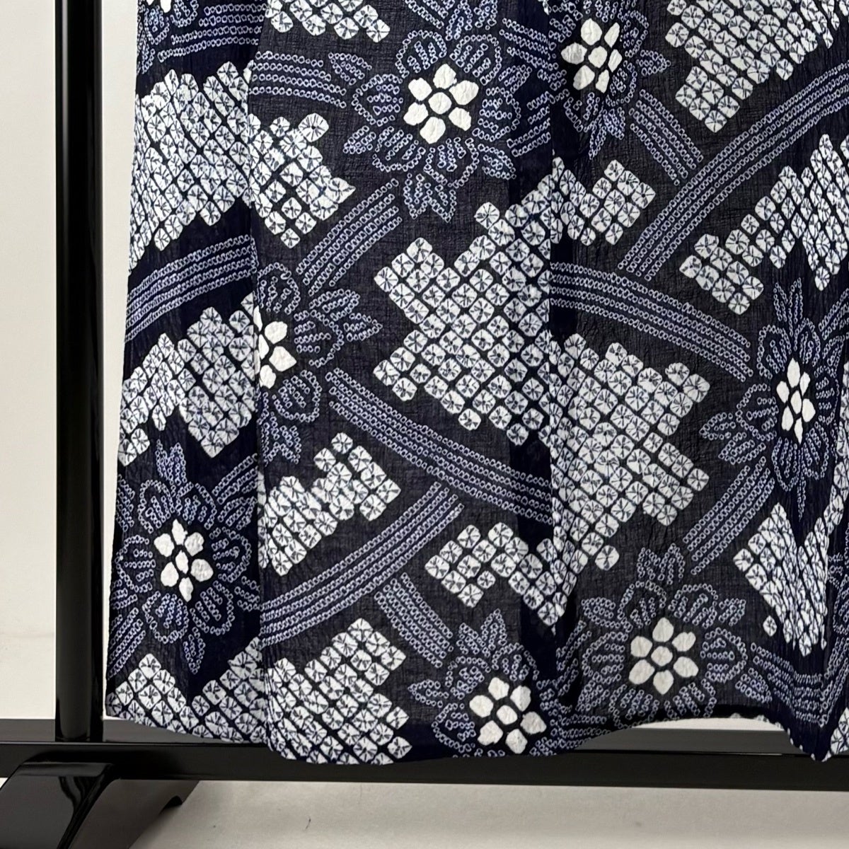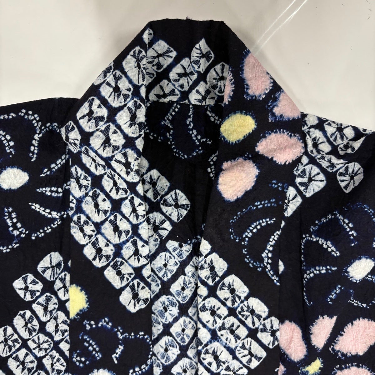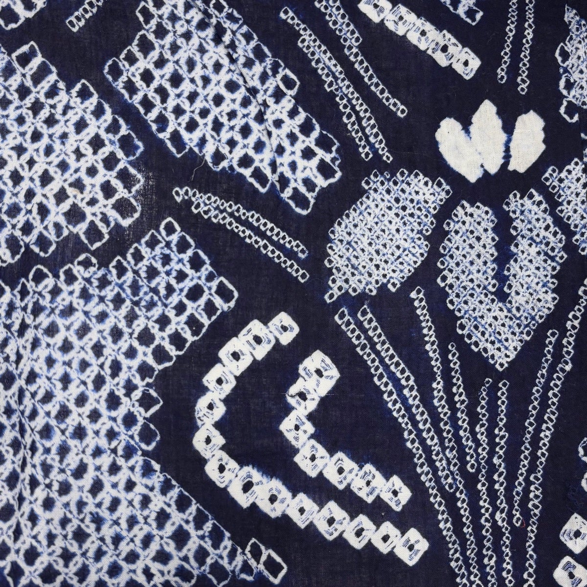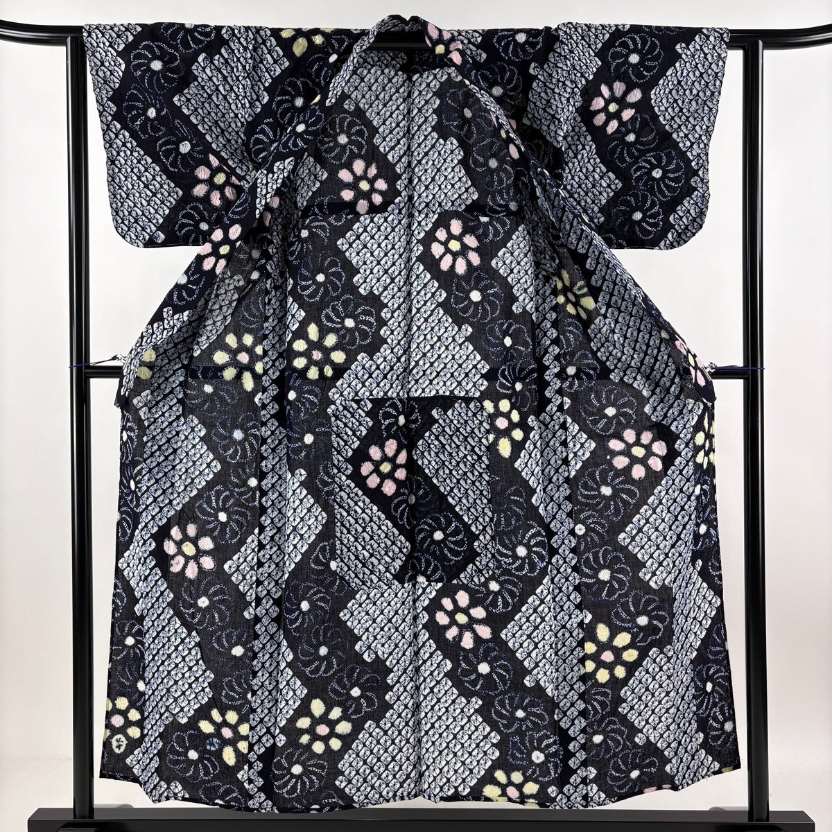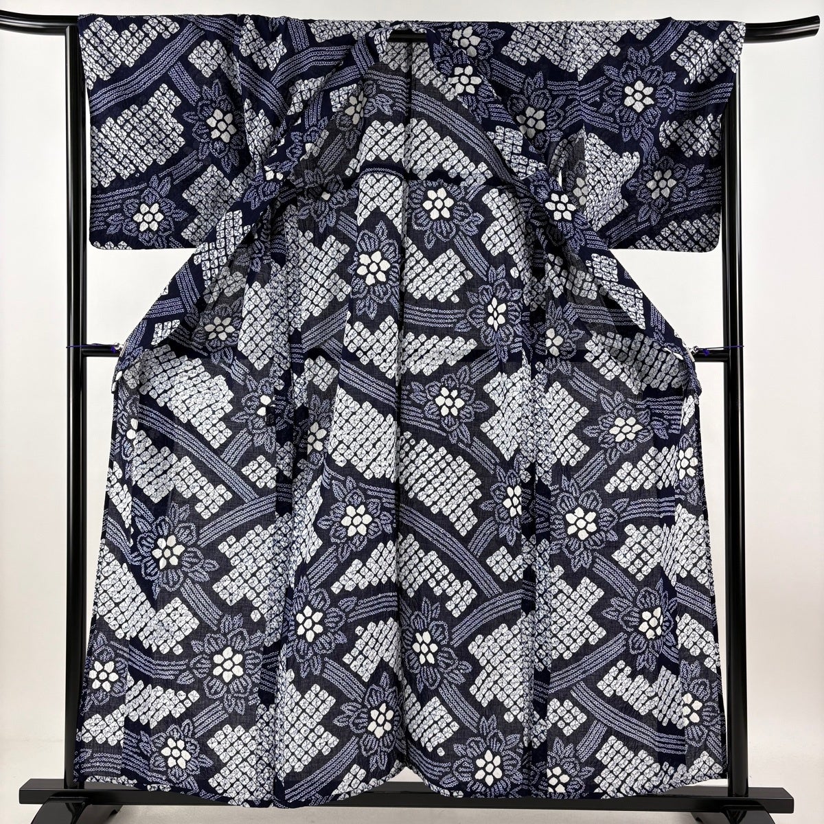 【美品】 浴衣 身丈154cm 裄丈63cm S 絞り浴衣 幾何学模様 濃紺 綿 名品