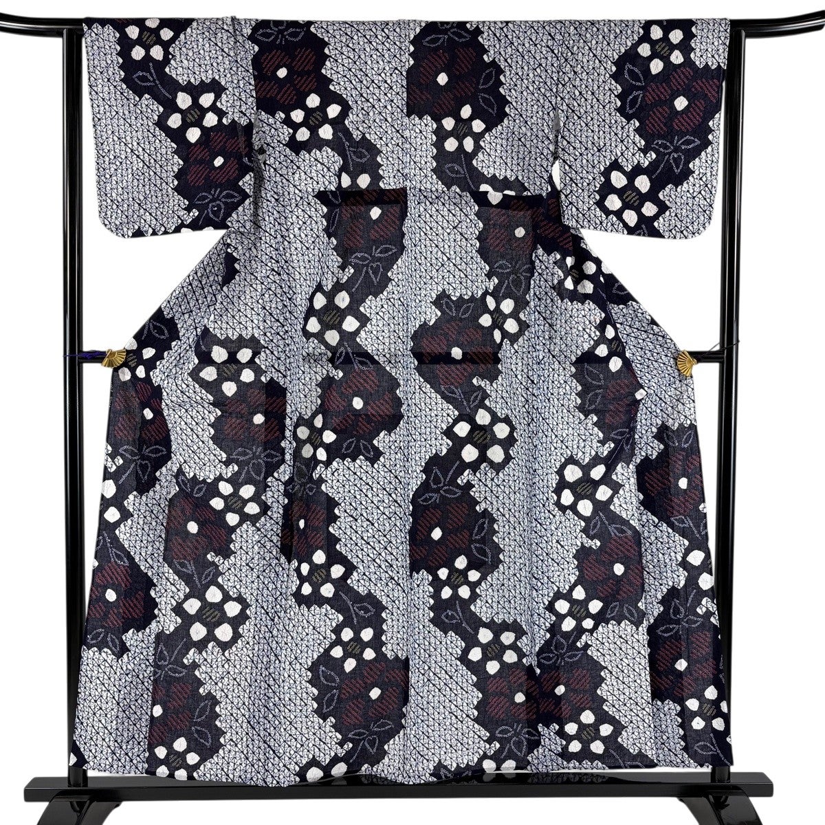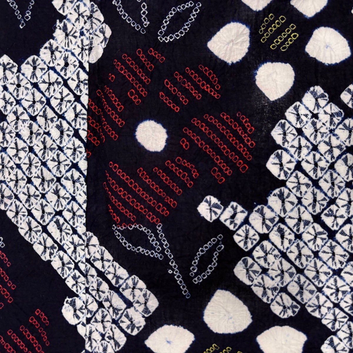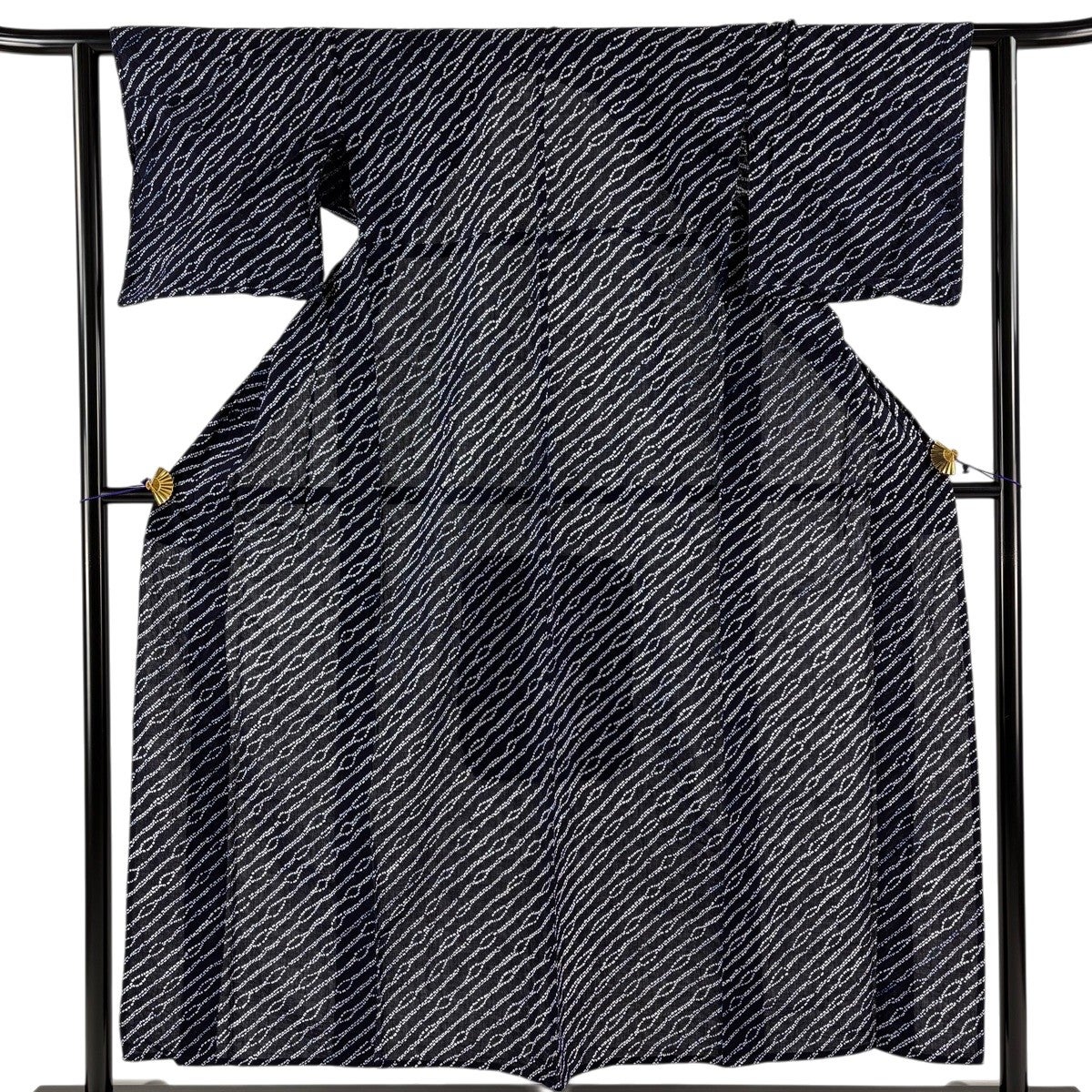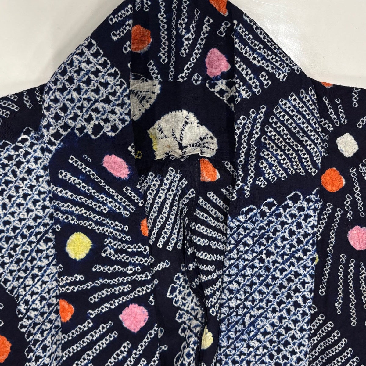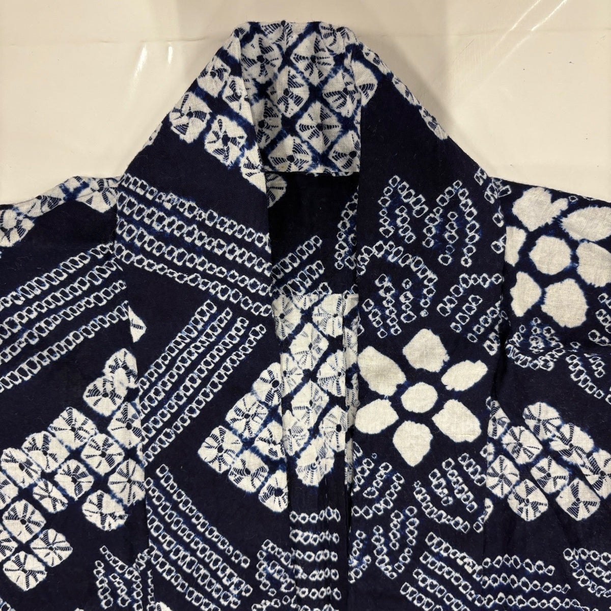 【美品】 浴衣 身丈154cm 裄丈63cm S 絞り浴衣 幾何学模様 濃紺 綿 名品