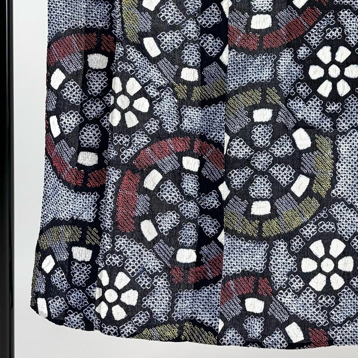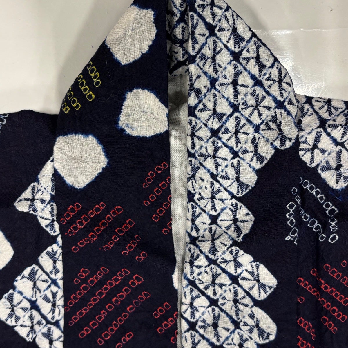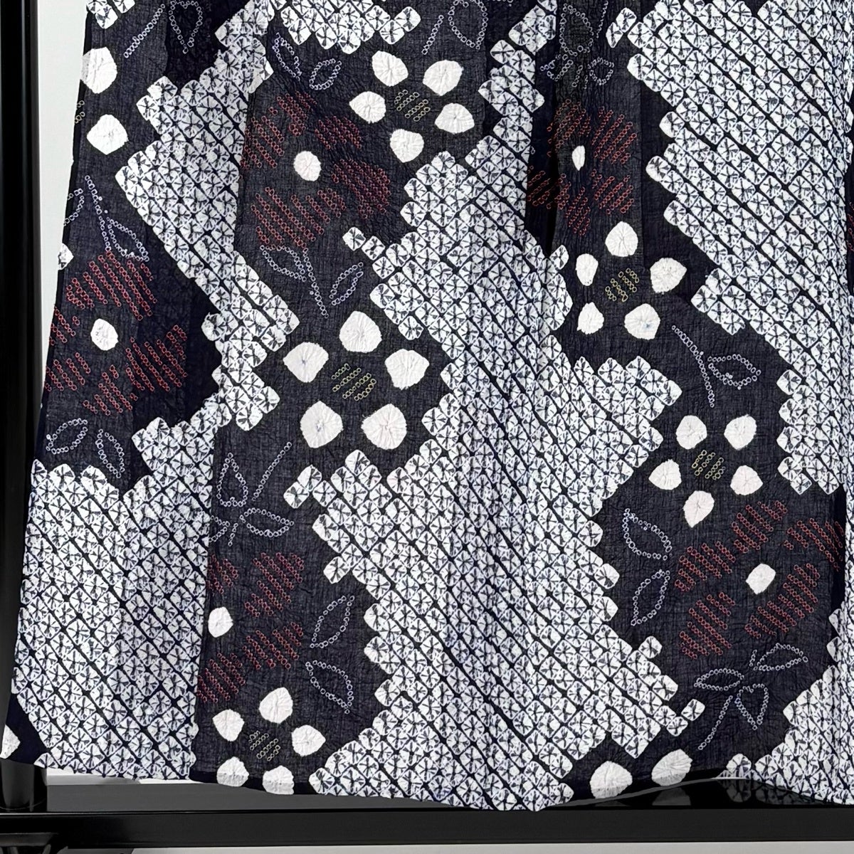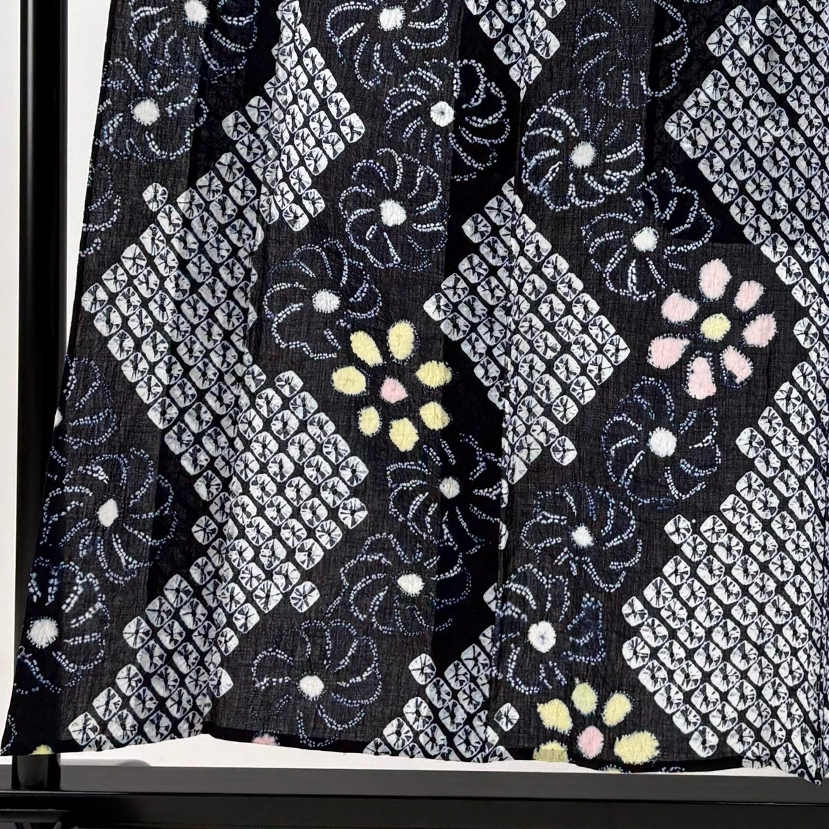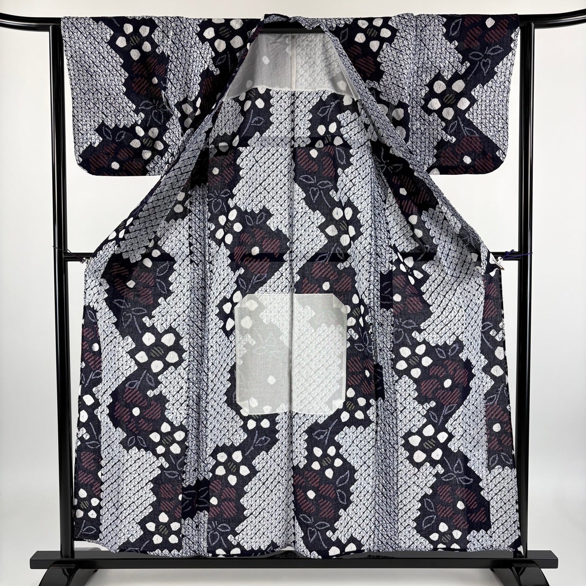 【美品】 浴衣 身丈154cm 裄丈63cm S 絞り浴衣 幾何学模様 濃紺 綿 名品