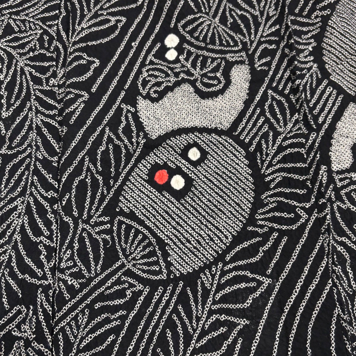 【美品】 浴衣 身丈146cm 裄丈62cm S 絞り浴衣 葉柄 幾何学 濃紺 綿 名品