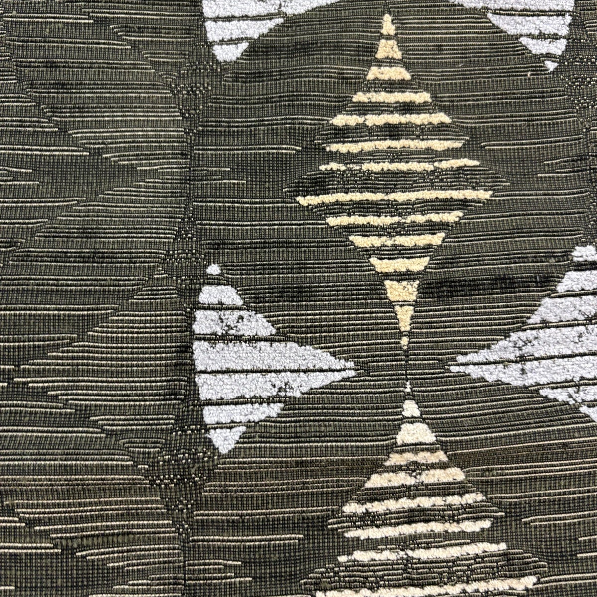 袋帯 秀品 幾何学模様 金糸 銀彩 深緑 全通 正絹