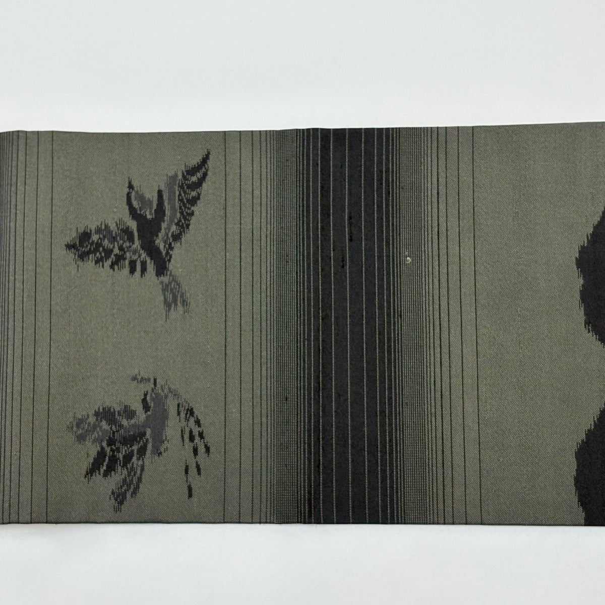 【美品】 袋帯 名品 鳥 幾何学 箔 刺繍 深緑 六通 正絹