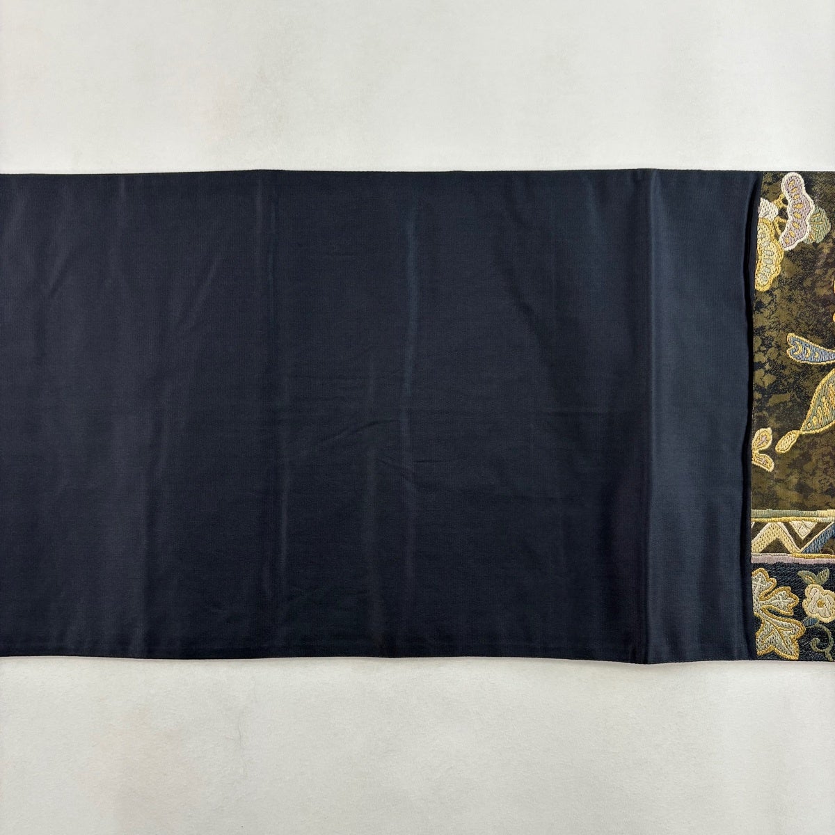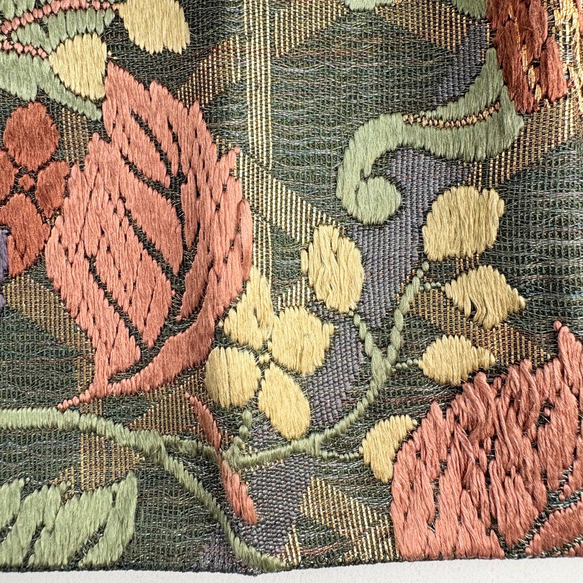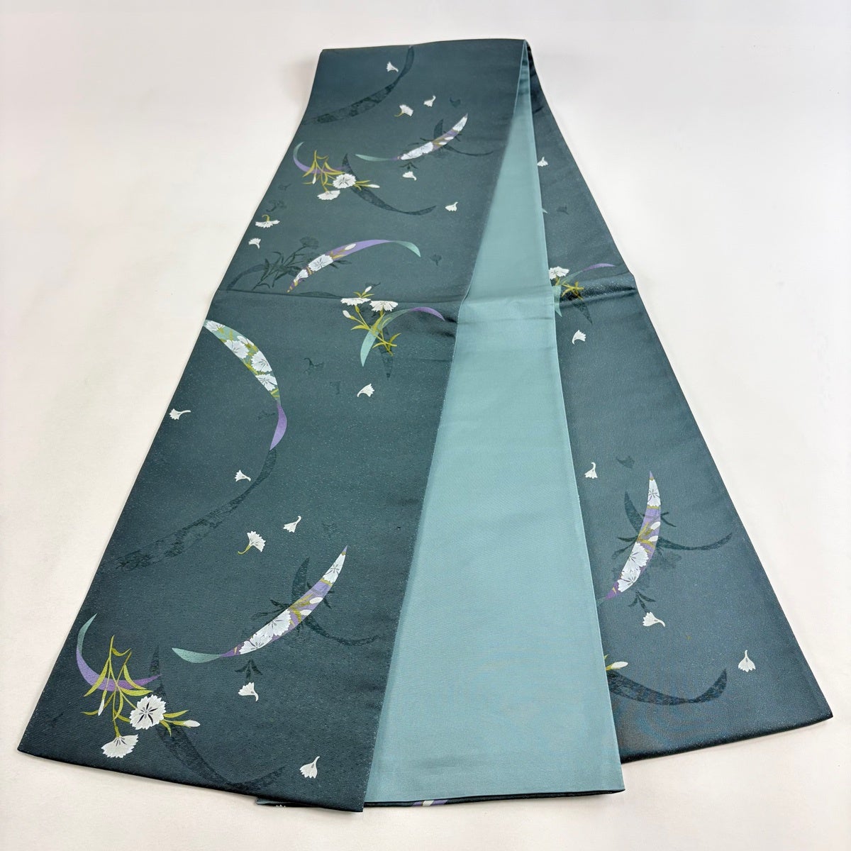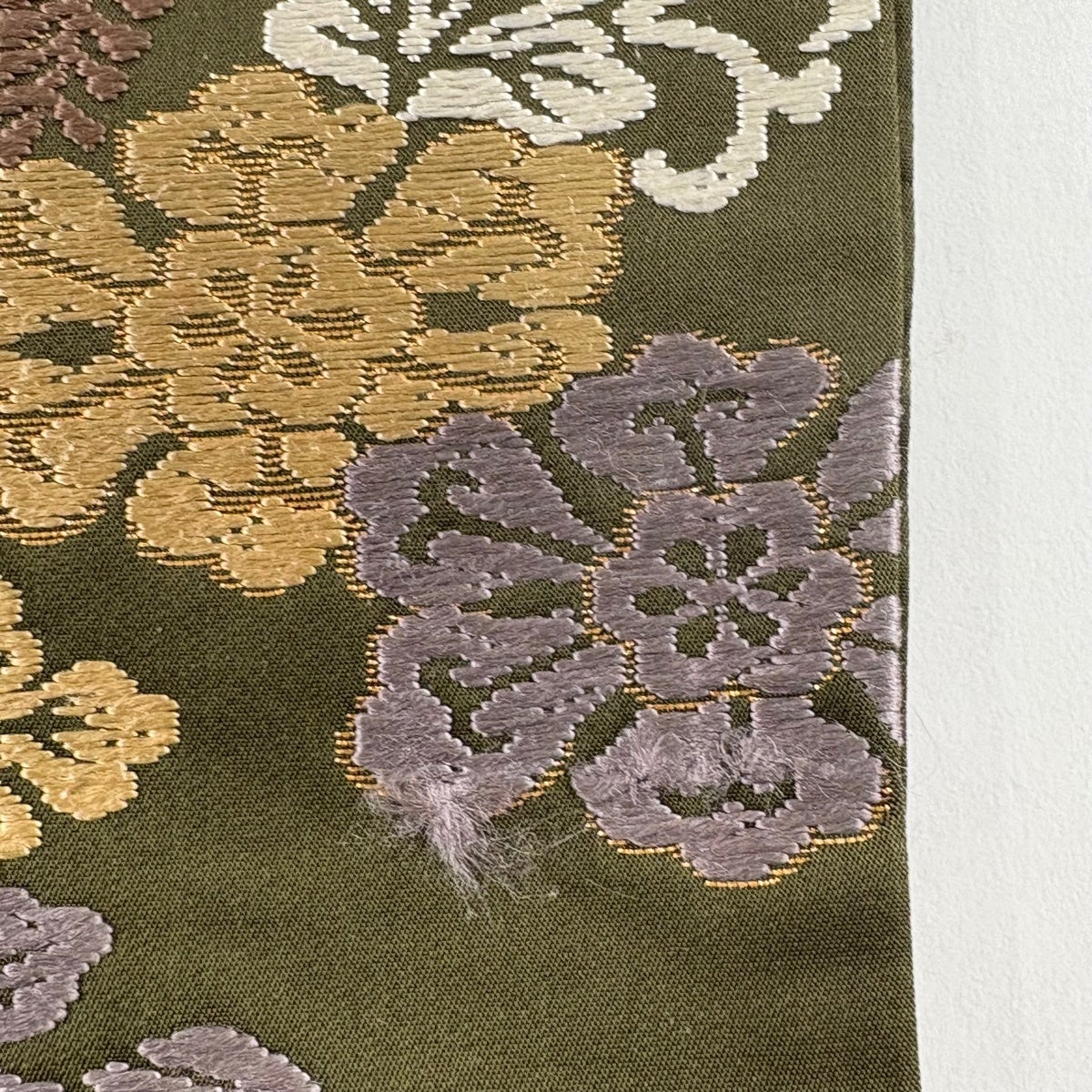50%OFF 袋帯 逸品 扇面 草花 刺繍 金糸 深緑 六通 正絹 K50