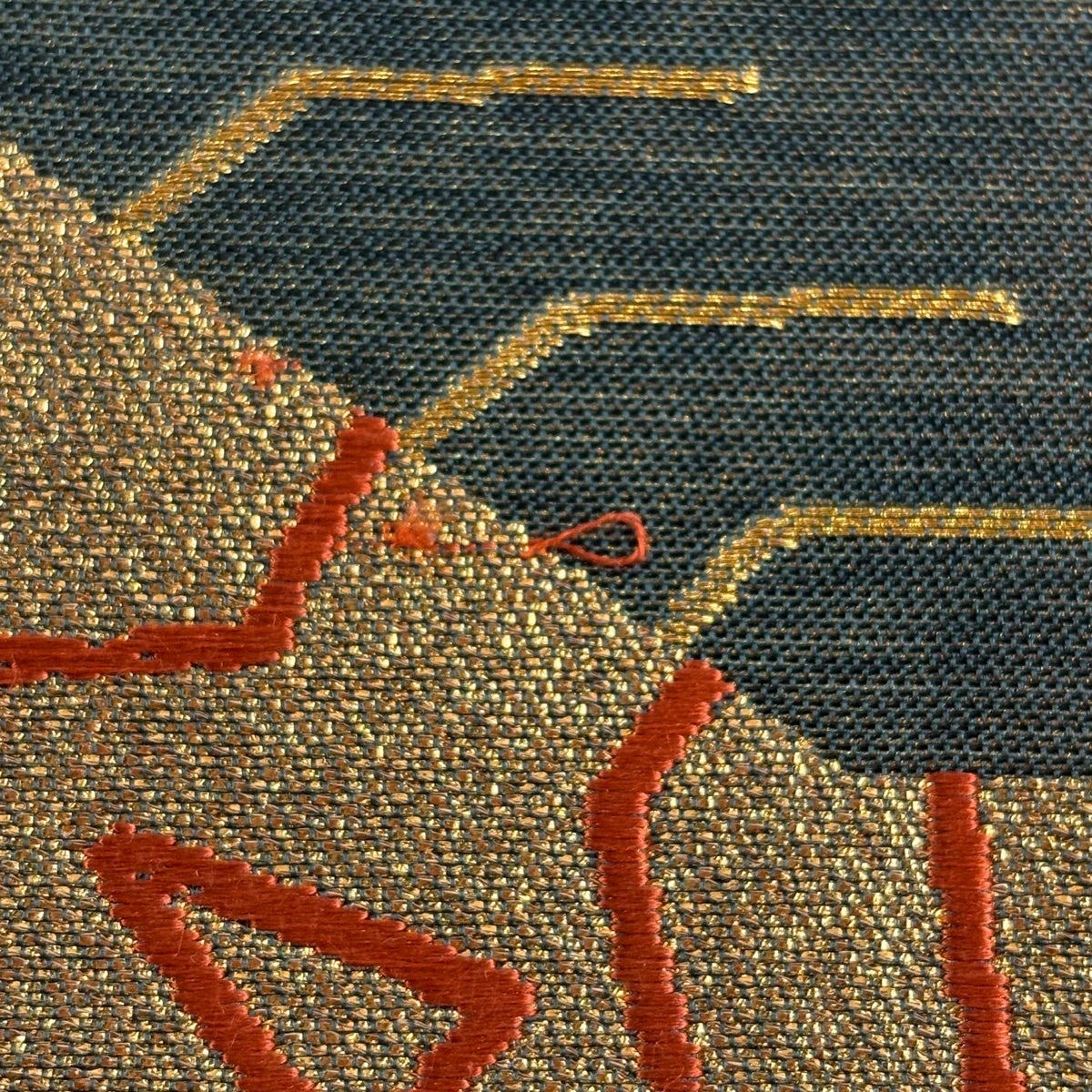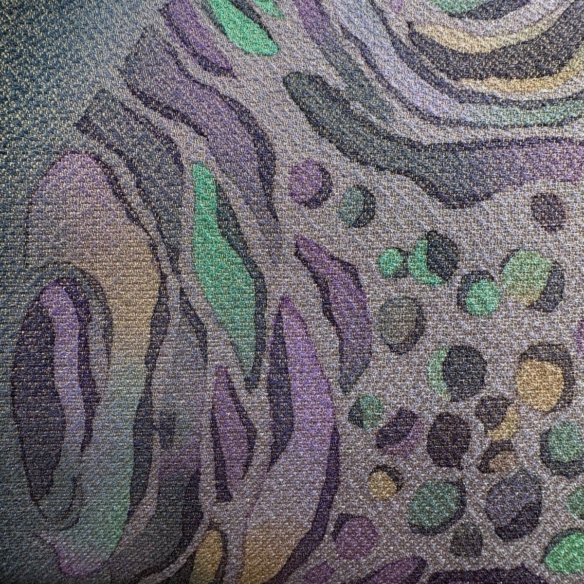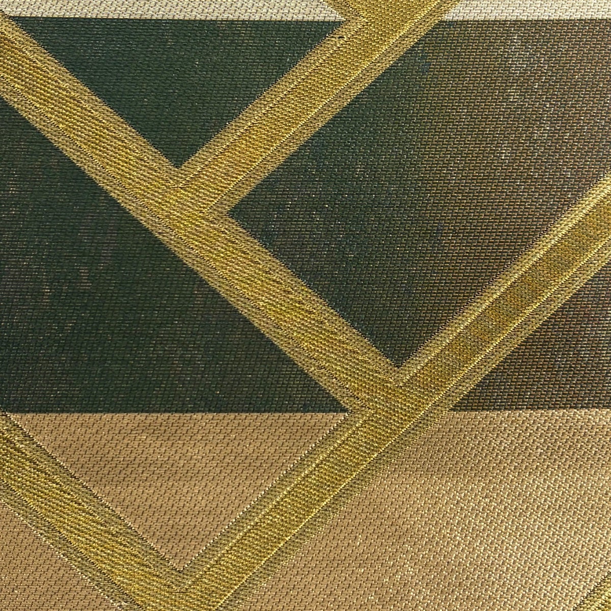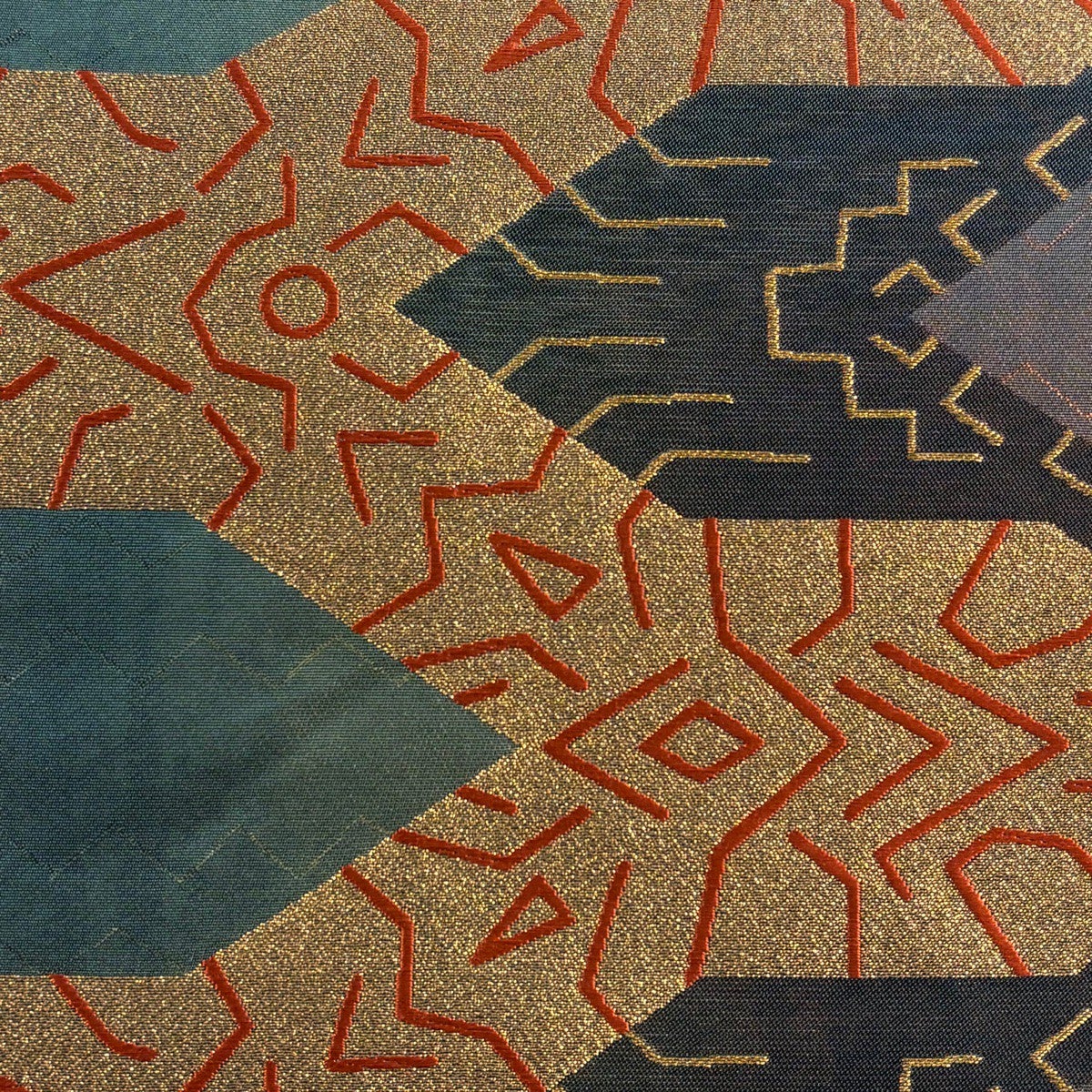 袋帯 名品 落款あり コシノヒロコ 幾何学模様 金糸 箔 深緑 六通 正絹