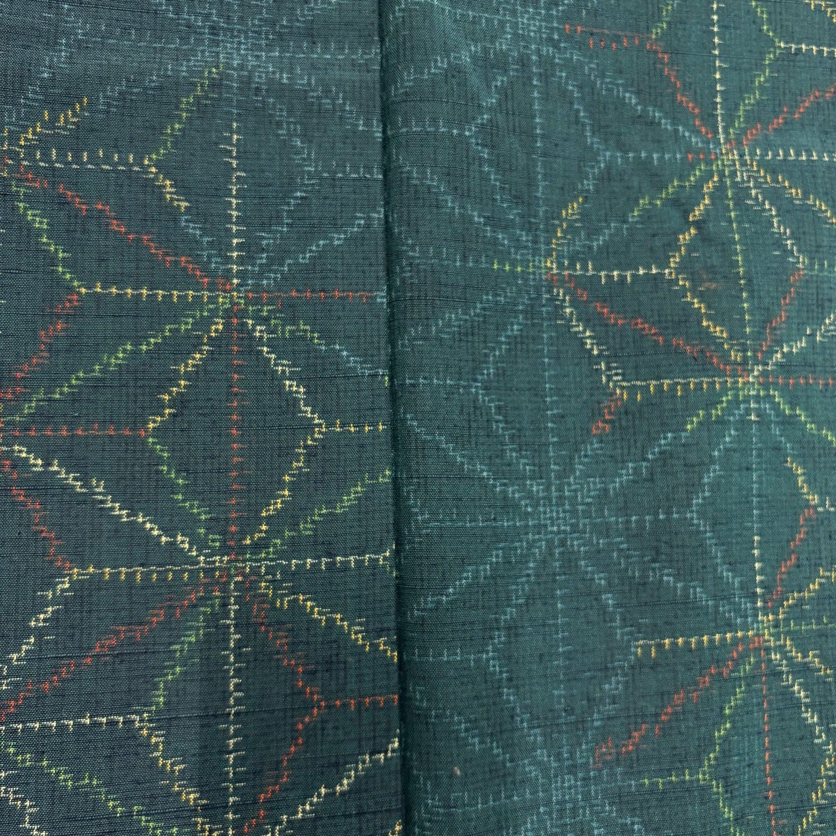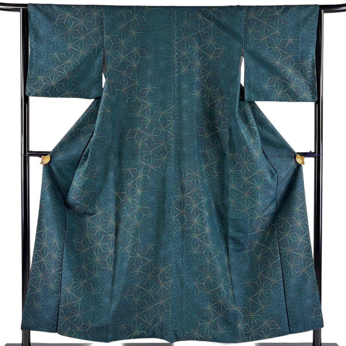 【美品】 紬 身丈153cm 裄丈63cm S 袷 麻の葉 深緑 正絹 優品