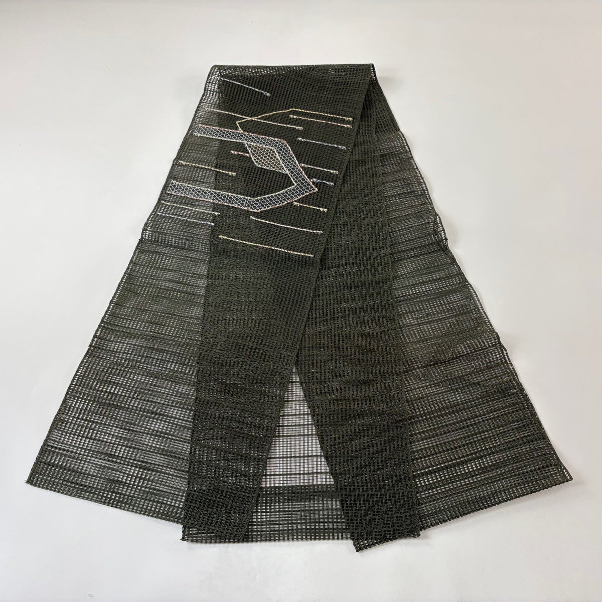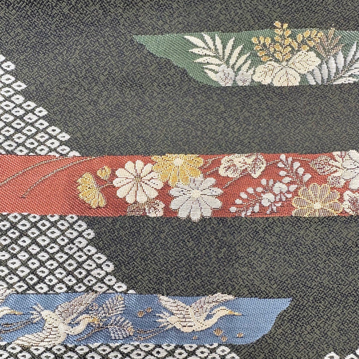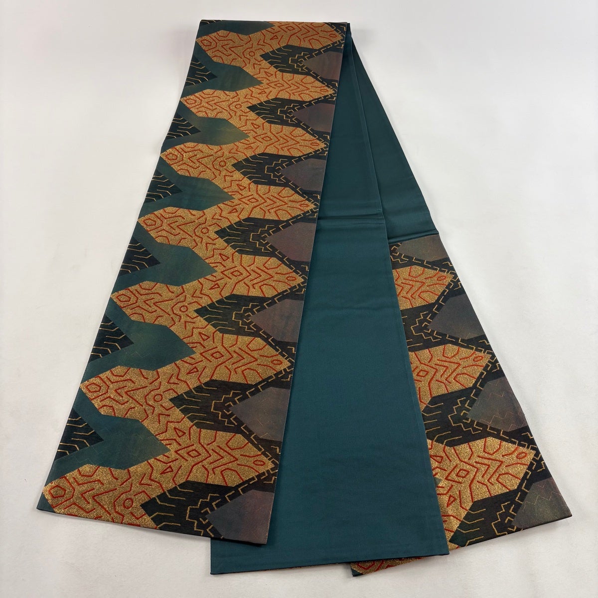 70%OFF 【美品】 袋帯 秀品 幾何学模様 深緑 六通 正絹 K70