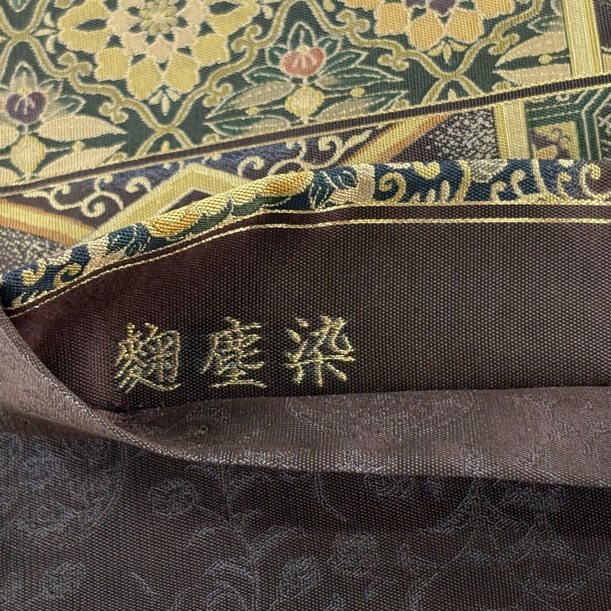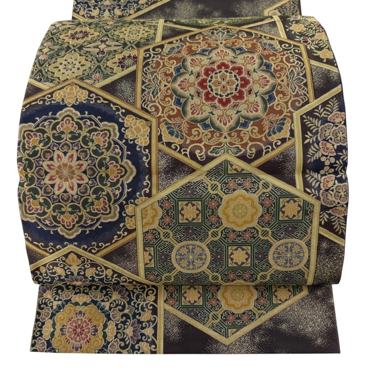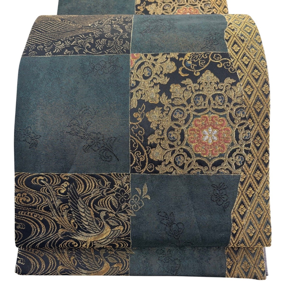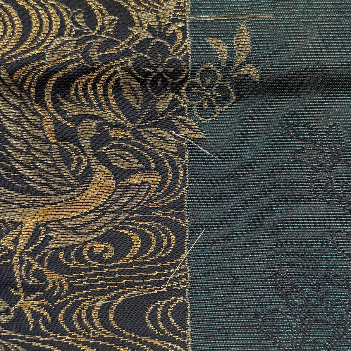 50%OFF 袋帯 秀品 瑞宝蜀江紋 箔 唐織 深緑 六通 正絹 K50