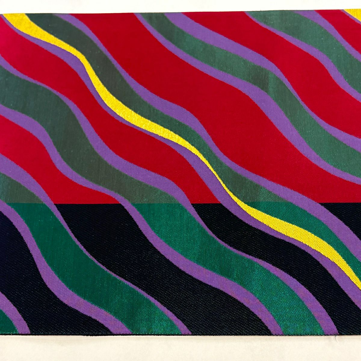 70%OFF 袋帯 秀品 よろけ縞 金通し 深緑 全通 正絹 K70