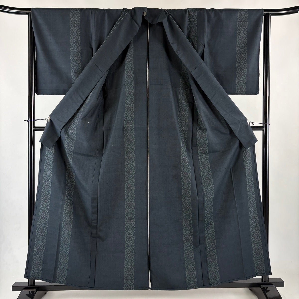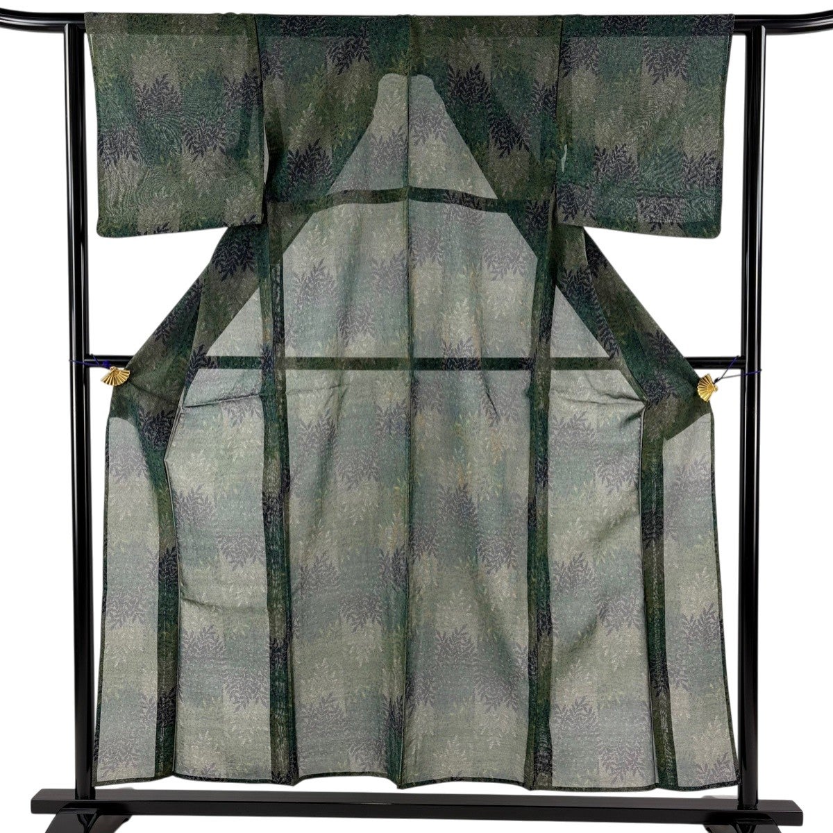 30%OFF 紬 身丈155.5cm 裄丈62cm S 薄物 夏紬 葉柄 縦縞 深緑 正絹 秀品 K30