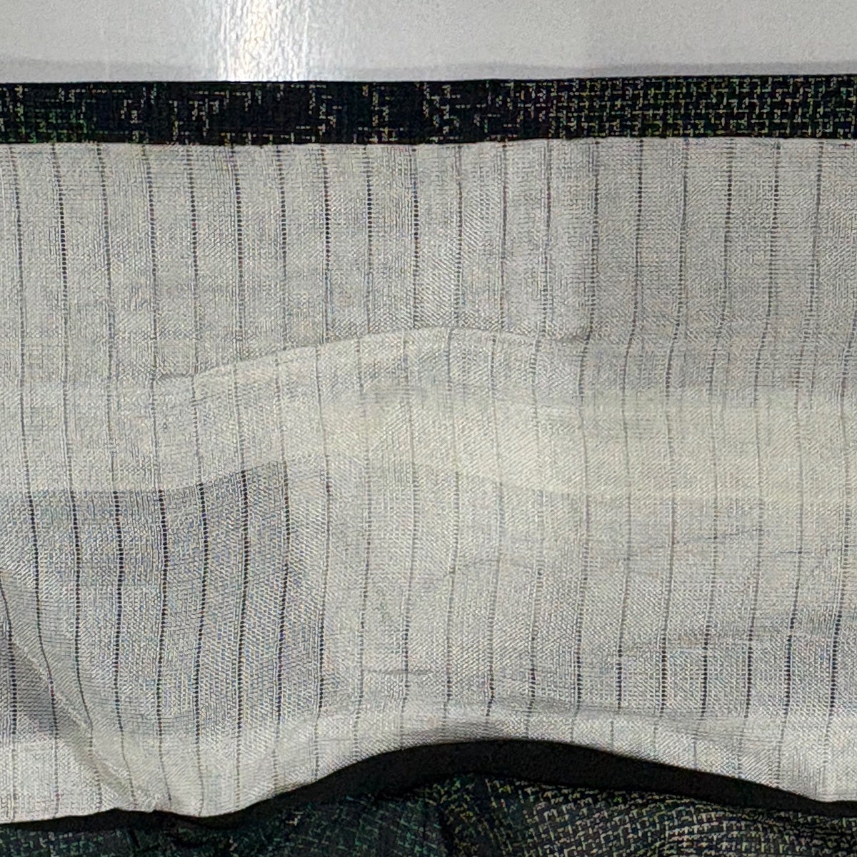 70%OFF 【美品】 名古屋帯 秀品 八寸名古屋帯 松葉仕立て 霞 よろけ縞 金糸 深緑 正絹 K70