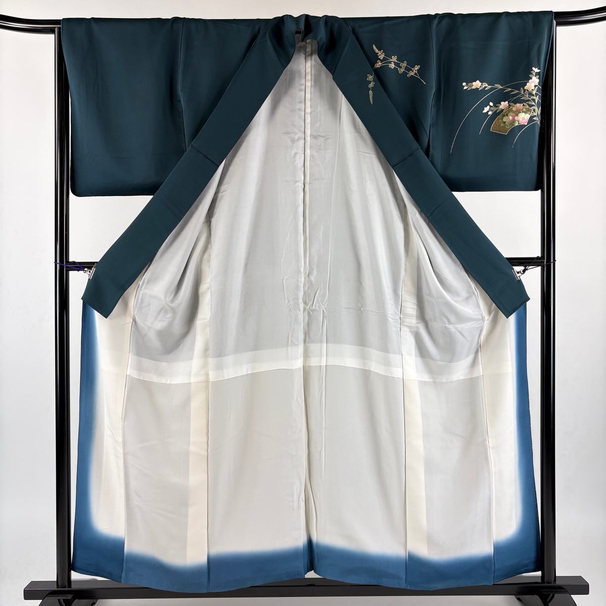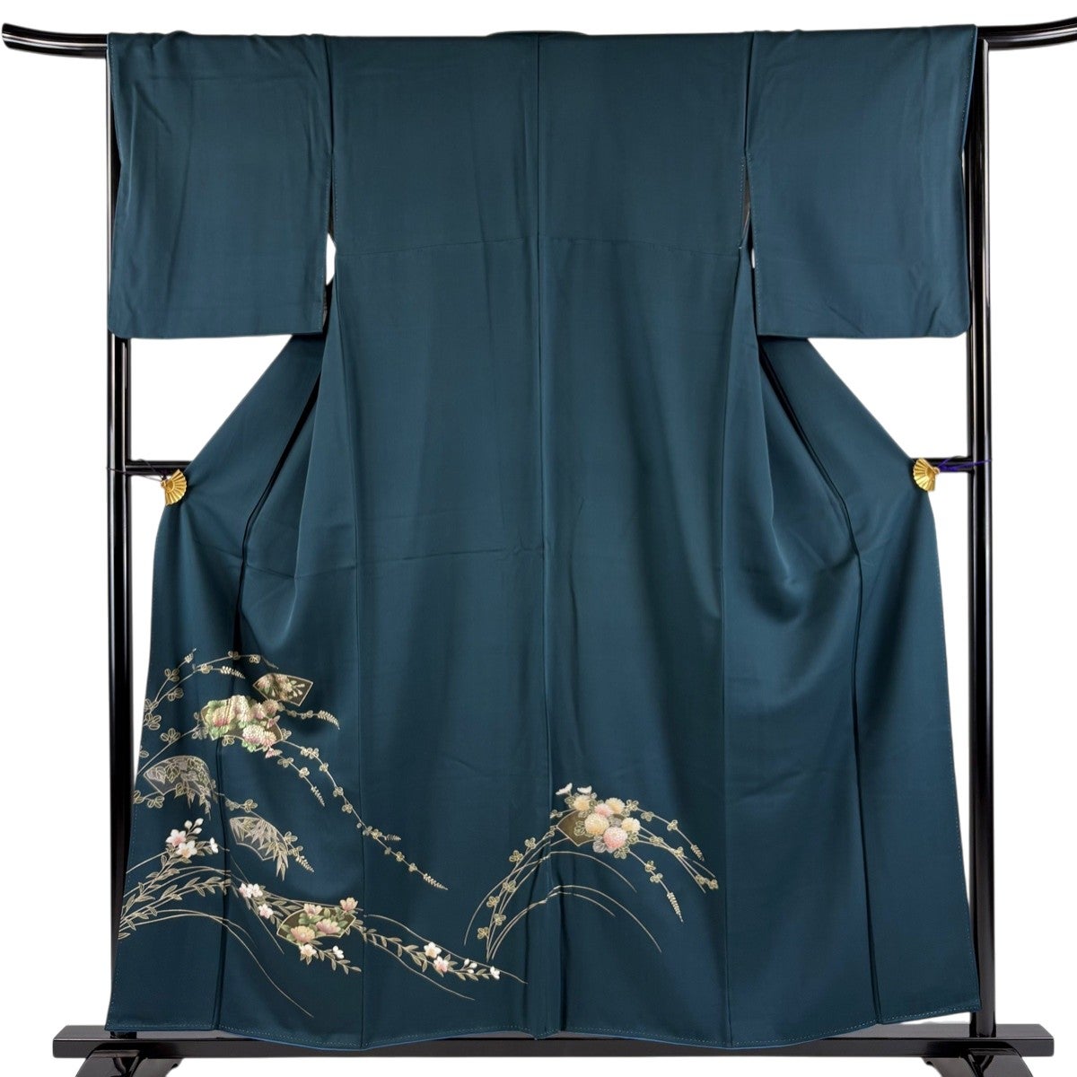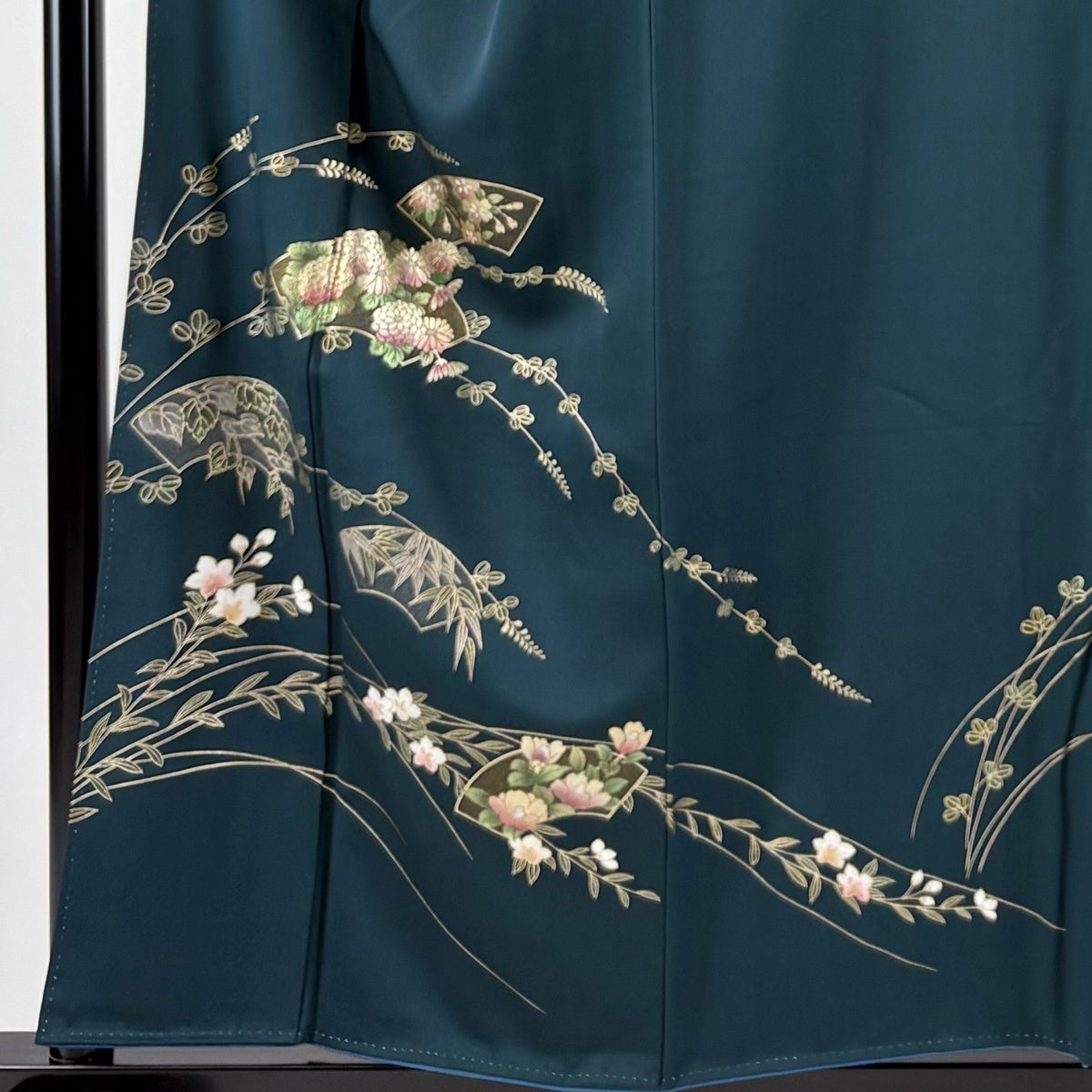30%OFF 付下げ 身丈157cm 裄丈65cm M 袷 扇面 菊 金銀彩 深緑 正絹 秀品 K30