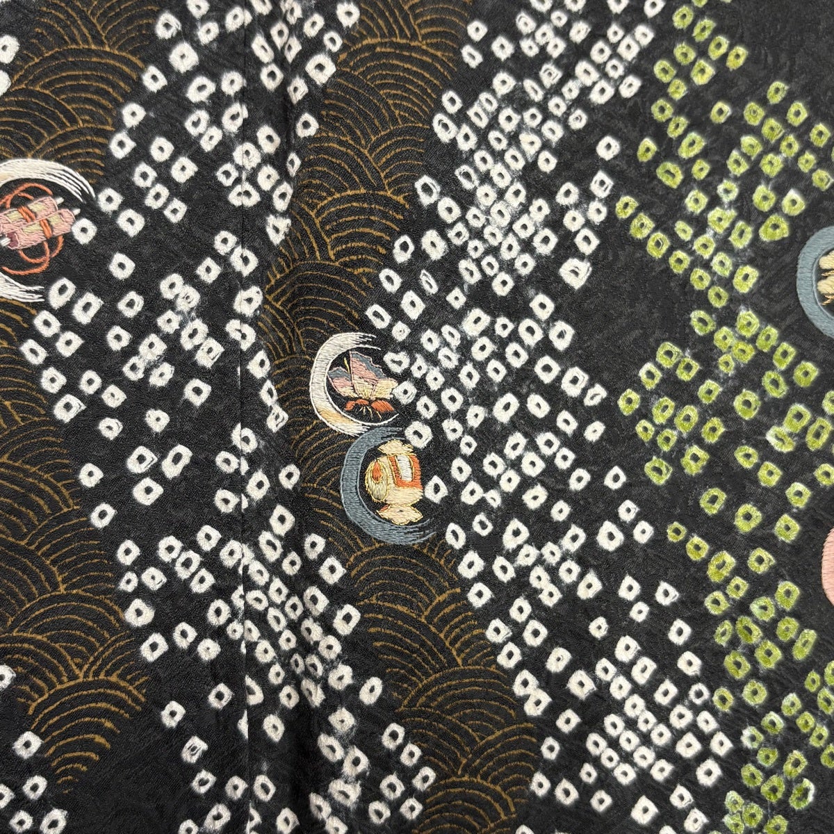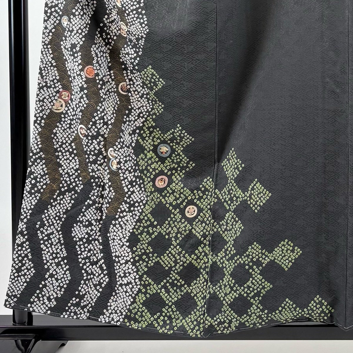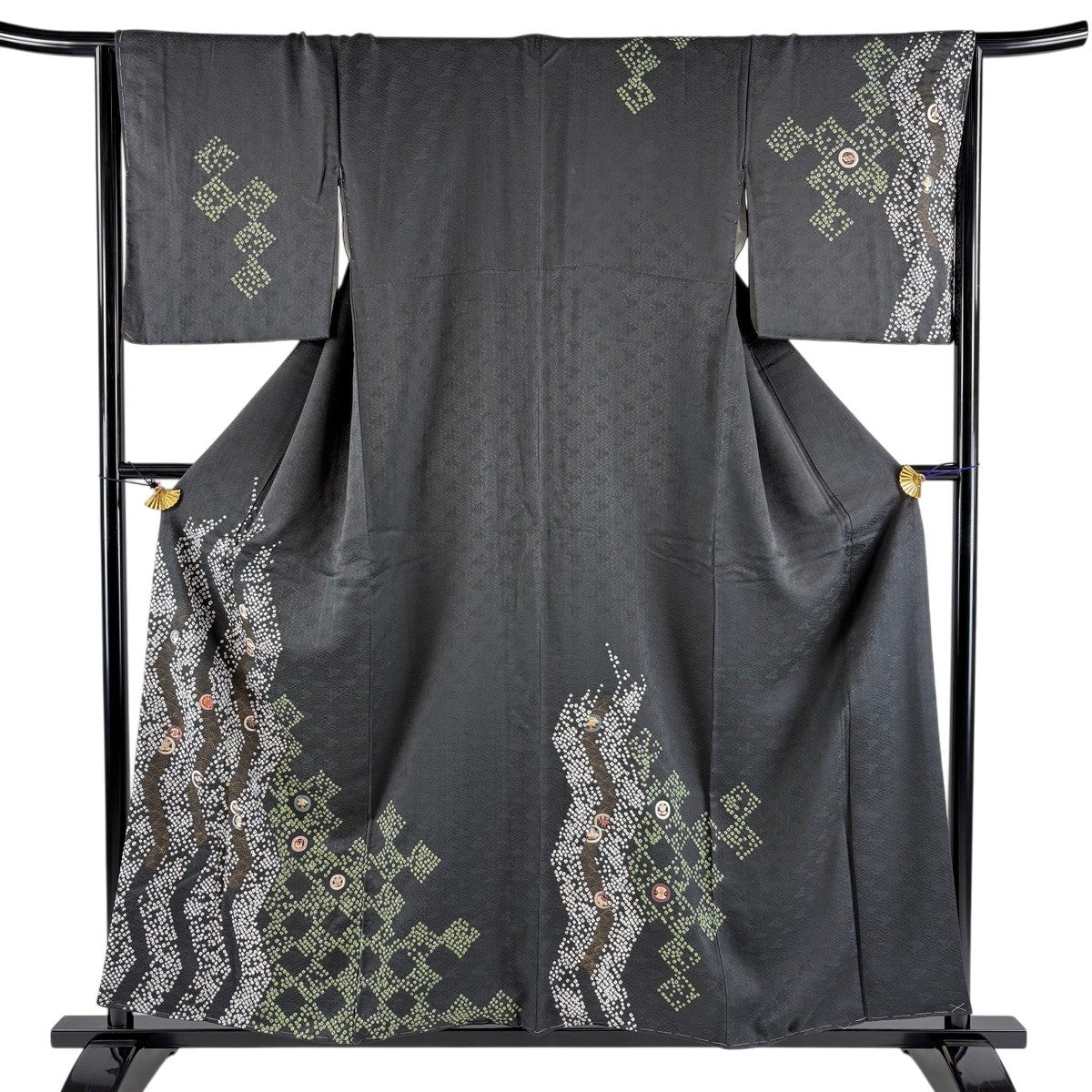 30%OFF 【美品】 浴衣 身丈155cm 裄丈64cm M 絞り浴衣 花籠 組紐 深緑 綿 名品 K30