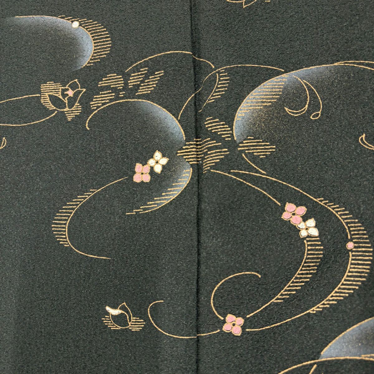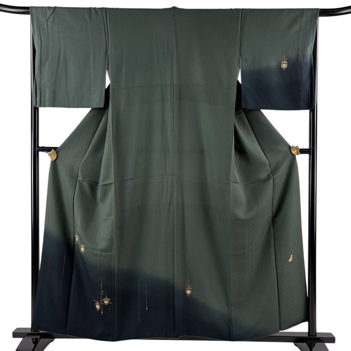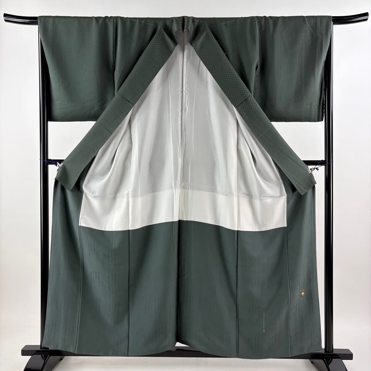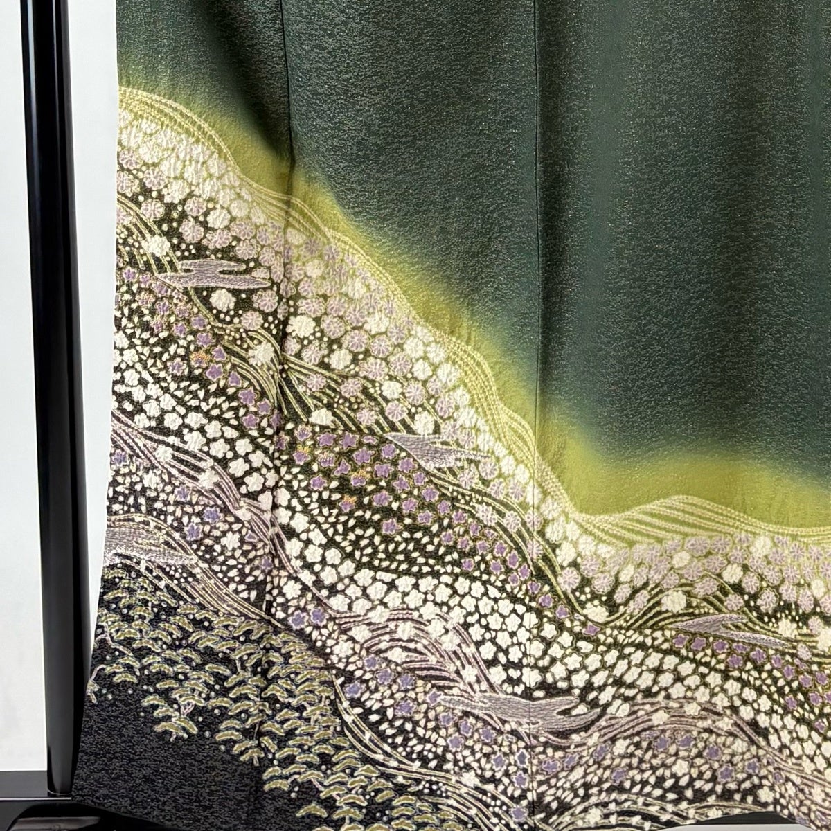 30%OFF 付下げ 身丈166.5cm 裄丈68.5cm L 袷 波 地紋 ぼかし 深緑 正絹 秀品 K30