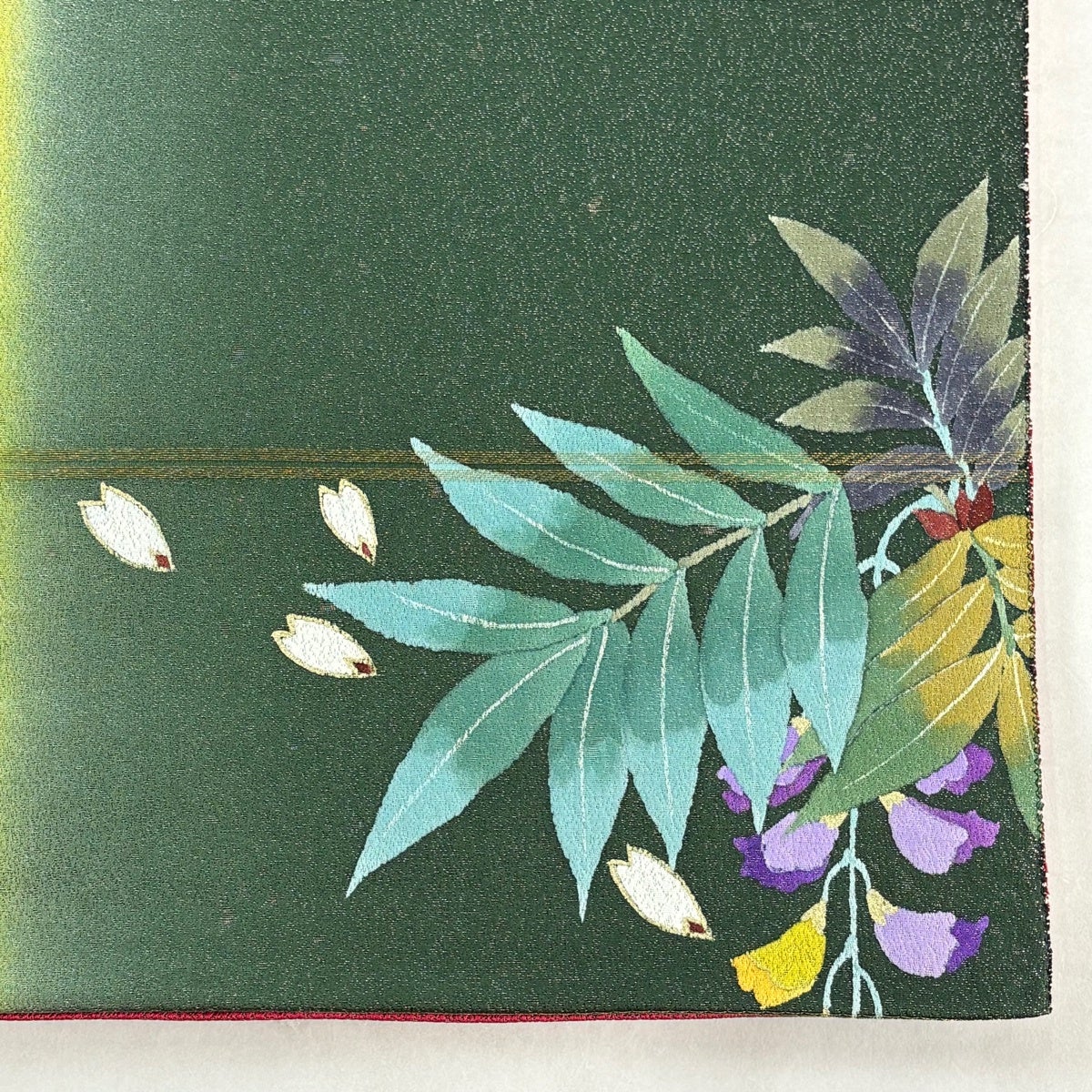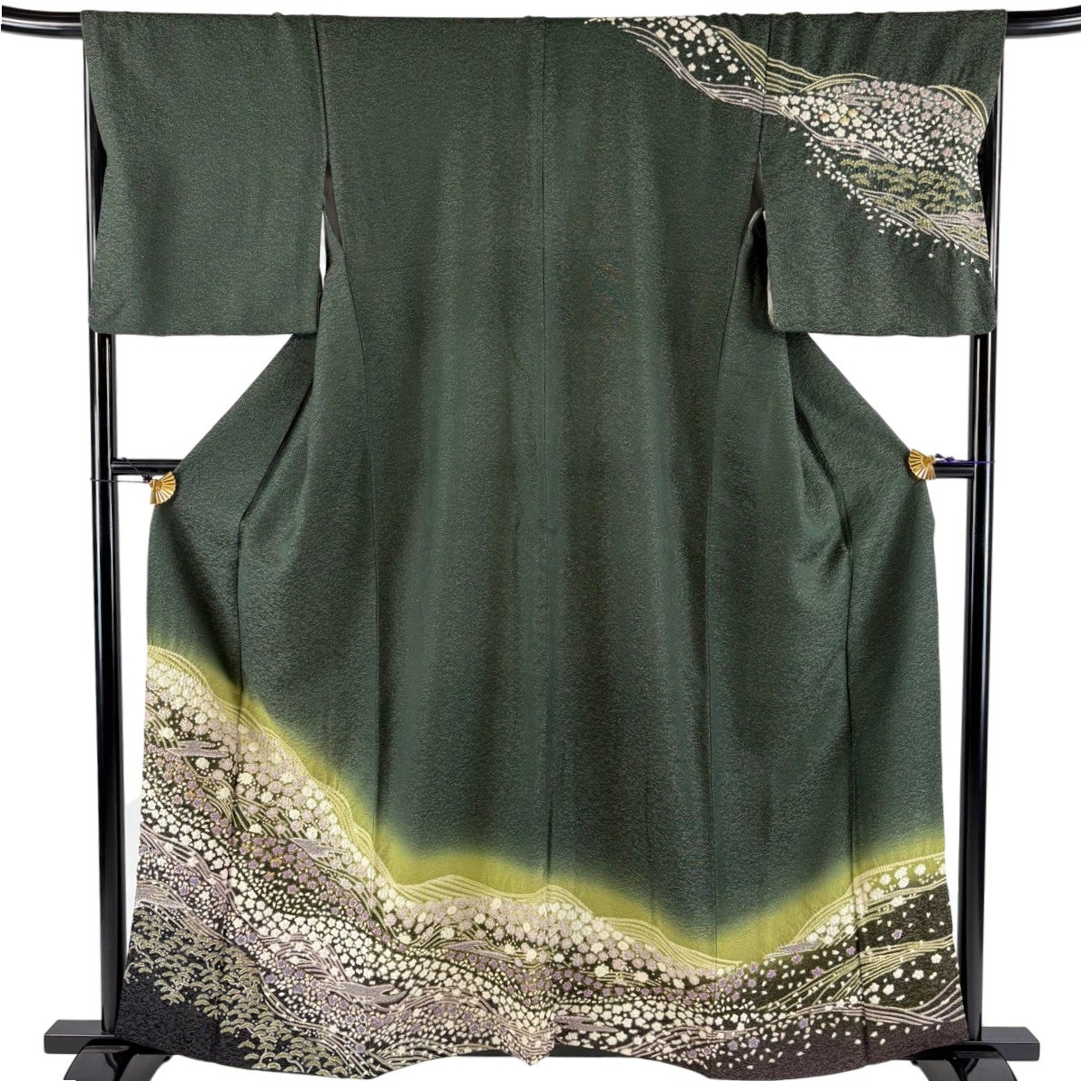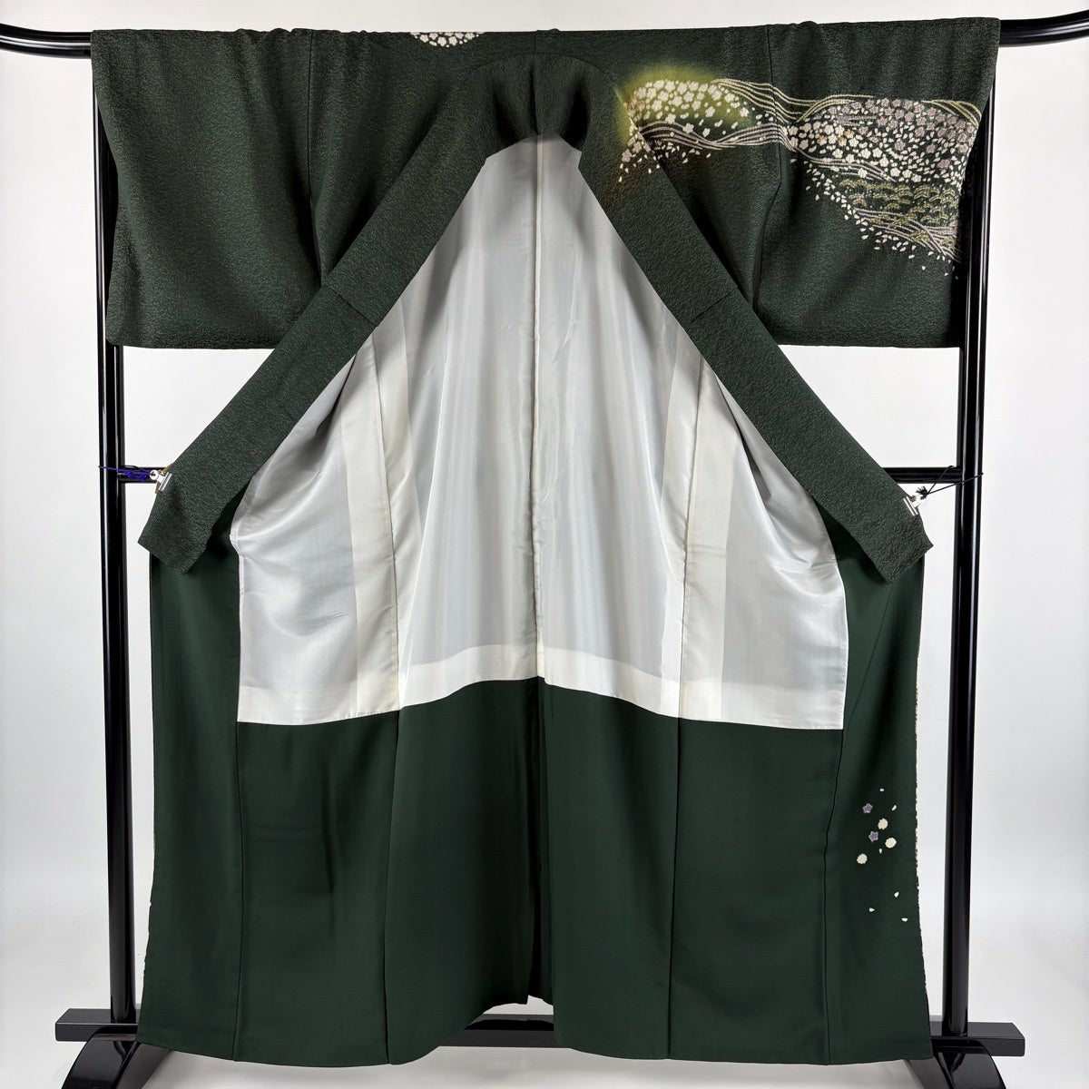 40%OFF 振袖 身丈160cm 裄丈63cm S 袷 桜 花びら 箔 金彩 深緑 正絹 逸品 K30