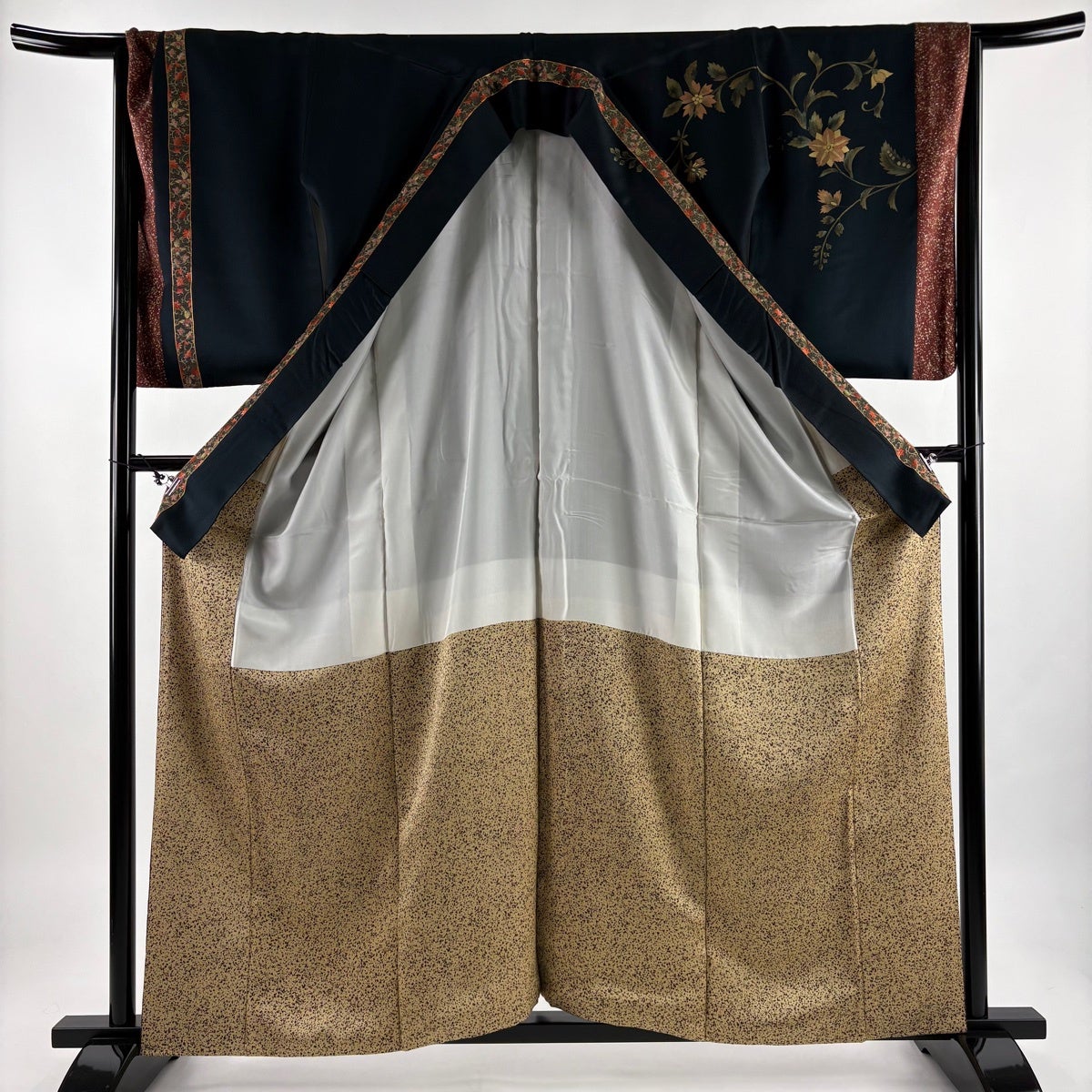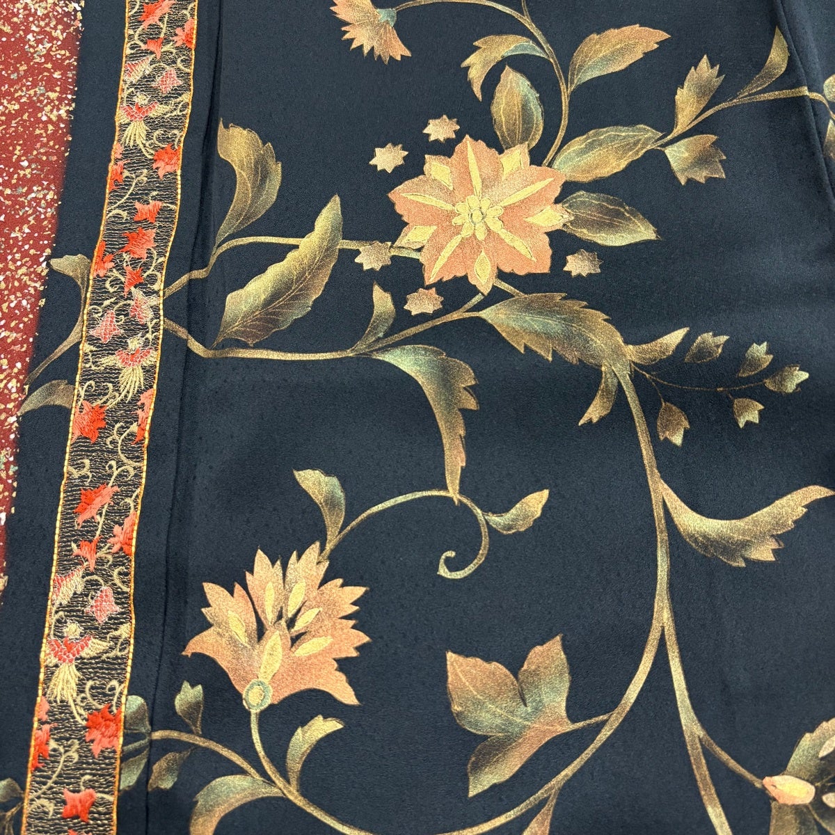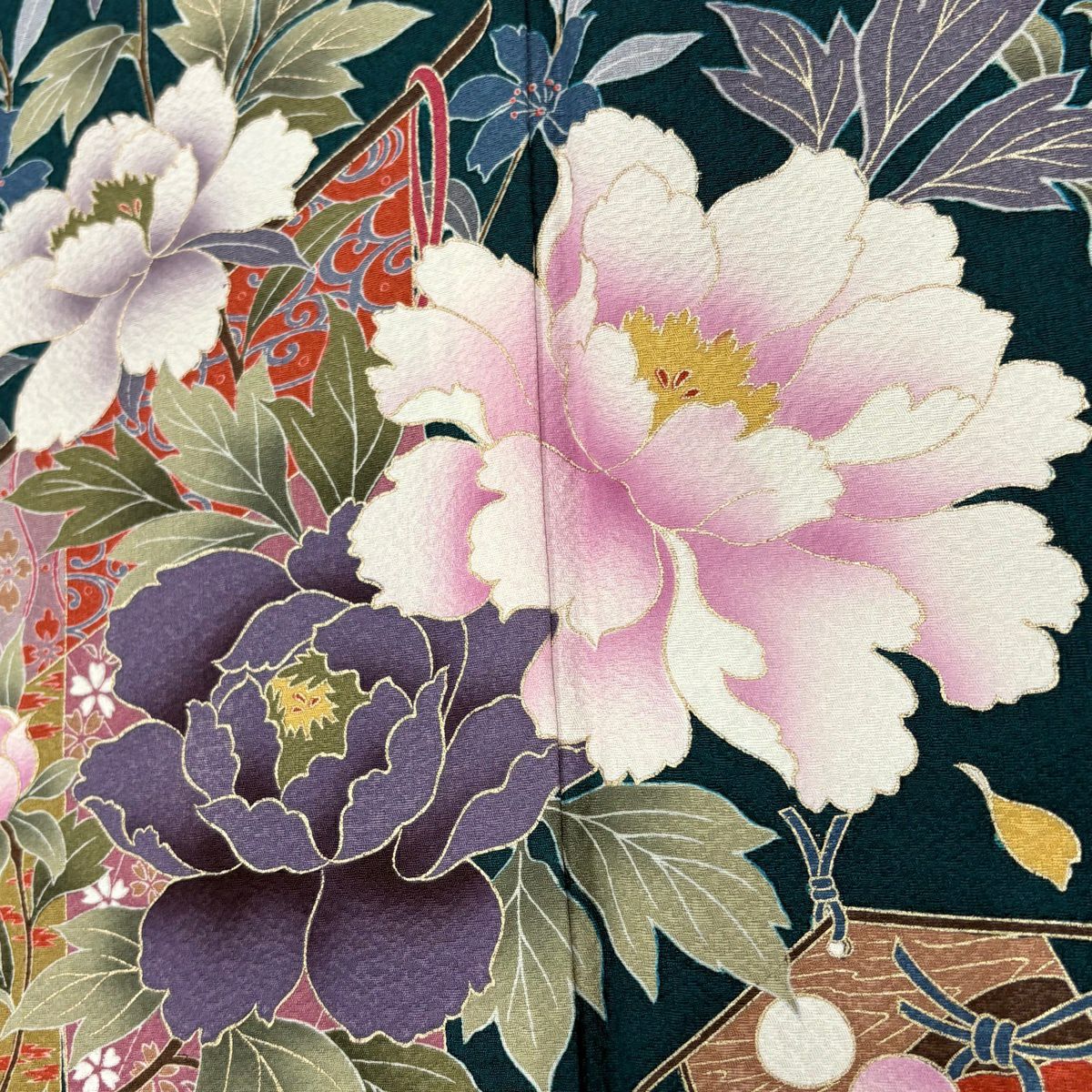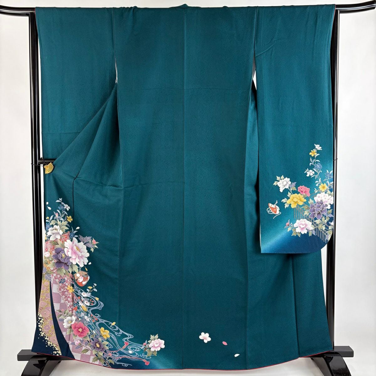 40%OFF 振袖 身丈160cm 裄丈63cm S 袷 桜 花びら 箔 金彩 深緑 正絹 逸品 K30